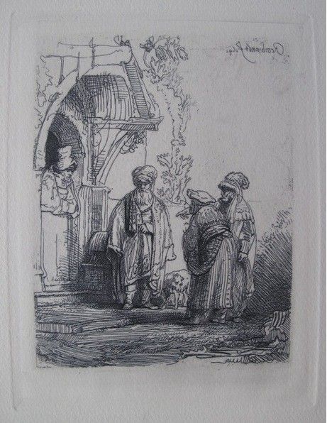 This is a beautiful etching, after Rembrandt, by master engraver Amand Durand. Titled "Three Oriental Figures" (year of original 1641). Signed in the plate. Measurements: image size is 6" x 4.5" on 15" x 11" Somerset paper. Comes with a certificate of authenticity. Ref. #118 according to the British Catalogue, circa 1797, is a hand pulled-ETCHING from the AUTHENTIC & Original copper Rembrandt plates by Armand-Durand (1831-1905) overseen by Art World Industries, inc. This piece is in excellent condition, and has never been framed.