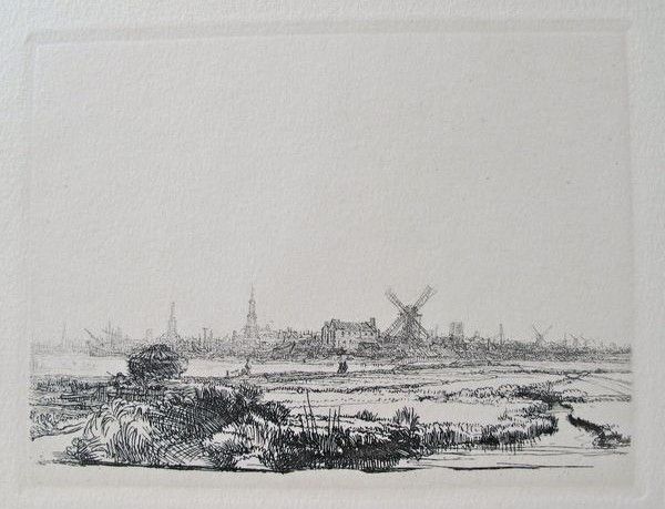 This is a beautiful etching, after Rembrandt, by master engraver Amand Durand. Titled "VIEW OF AMSTERDAM FROM THE NORTHWEST" (year of original 1640). Signed in the plate. Measurements: image size is 5" x 6.5" on 10" x 11.5" Somerset paper. Comes with a certificate of authenticity. Ref. #210 according to the British Catalogue, circa 1797, is a hand pulled-ETCHING from the AUTHENTIC & Original copper Rembrandt plates by Armand-Durand (1831-1905) overseen by Art World Industries, inc. This piece is in excellent condition, and has never been framed.