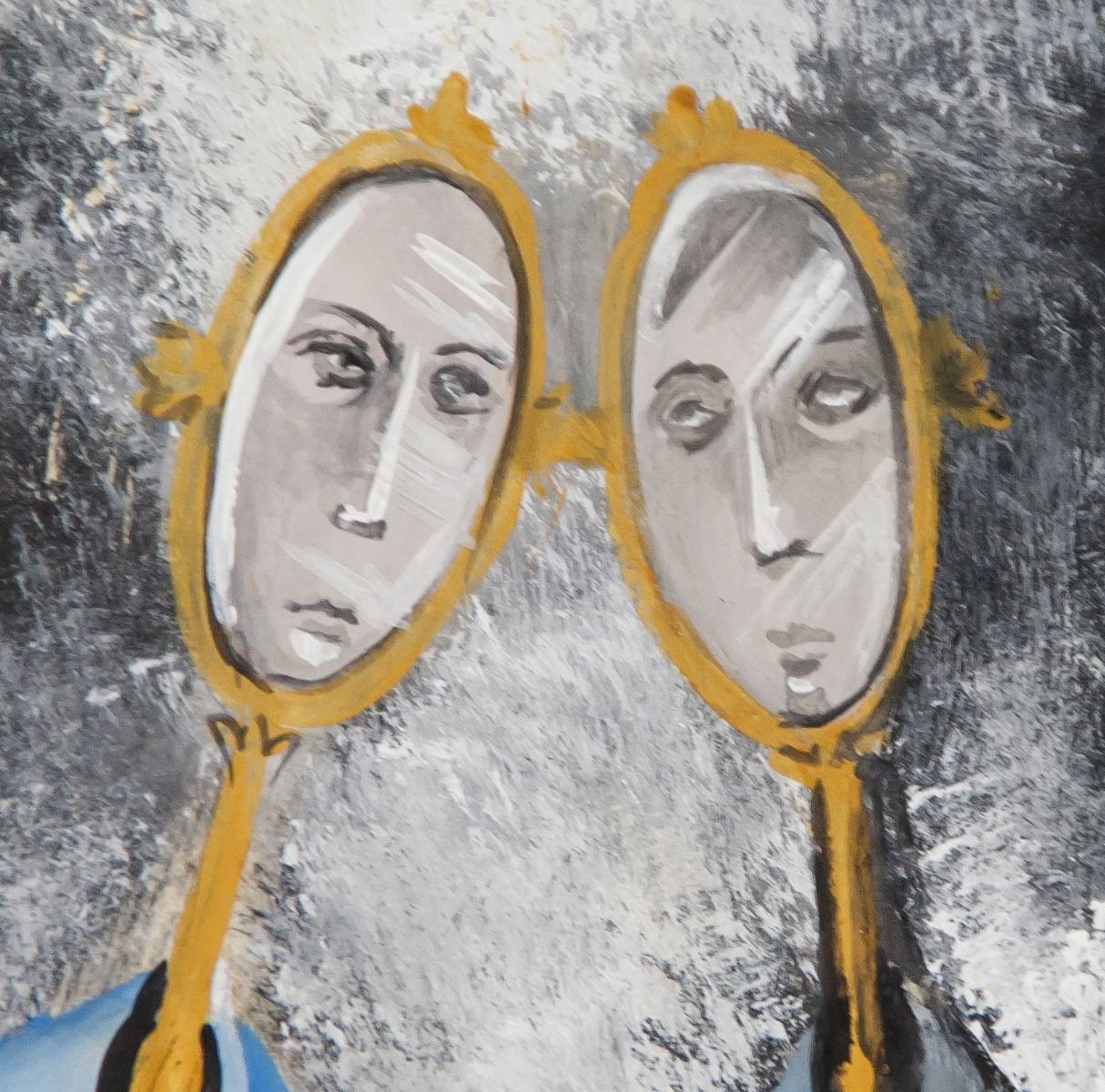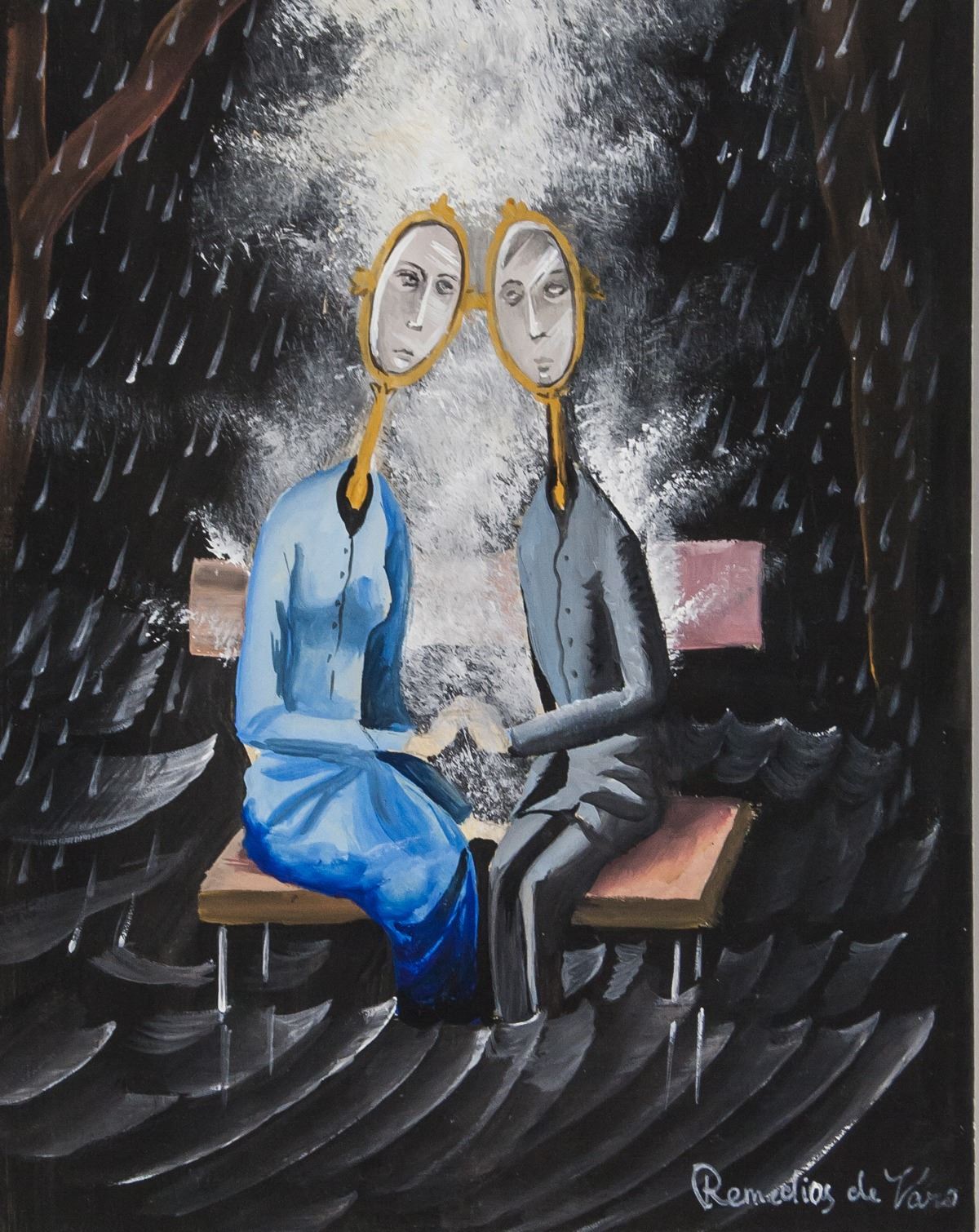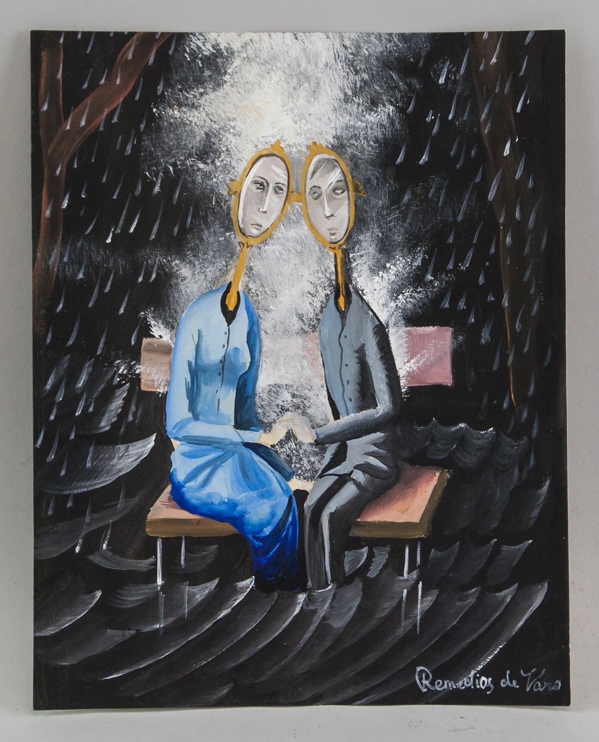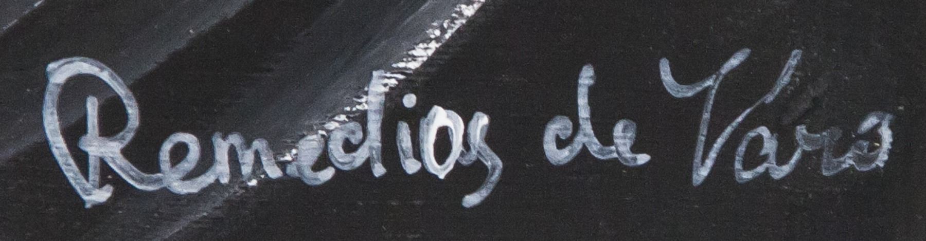 Tempera on paper. Featuring a portrait of a couple. Signed Remedios de Vara on the lower right corner. Attributed to Remedios Varo (1908-1963, Spanish). 25.5 x 20.5 cm (10.0 x 8.1 inches). PROVENANCE: Southern Ontario estate