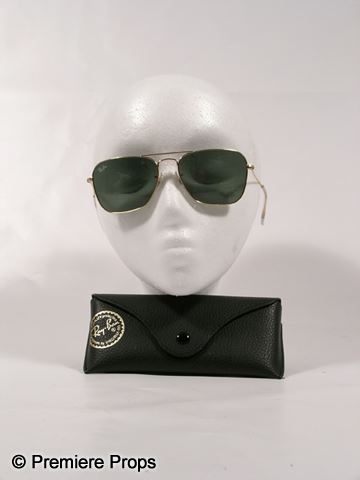 Ally (Emilie de Ravin) gold metal frame, with dark tinted glasses, Caravan Ray Ban sunglasses with black case and unopened glass cleaner cloth.