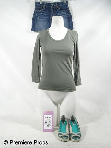 Remember Me - As seen in the hit new film, this is Ally (Emilie de Ravin) hero screenworn olive cotton long sleeve scoop neck 'Uniqulo' top, blue denim mini altered short 'No Label' skirt, and green and oatmeal floral open toe wedge 'Keds' shoes. Includes wardrobe tag! be sure to see Remember Me in theaters everywhere this weekend! (RME1040)