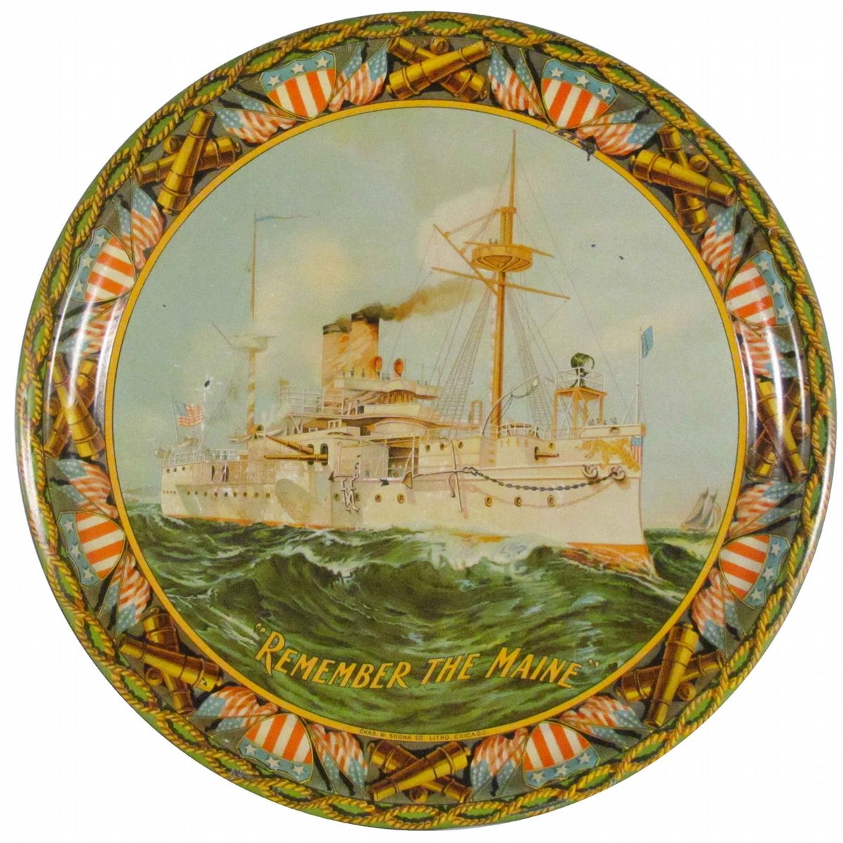 Remember the Maine Tin Serving Tray. Chas. W. Shonk, Litho. Excellent condition. 12 inch diameter.