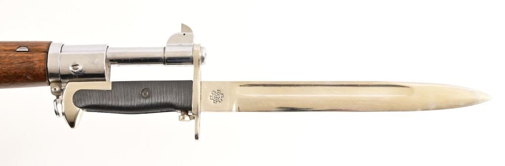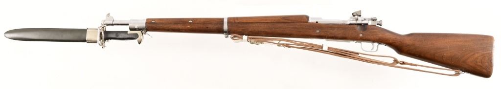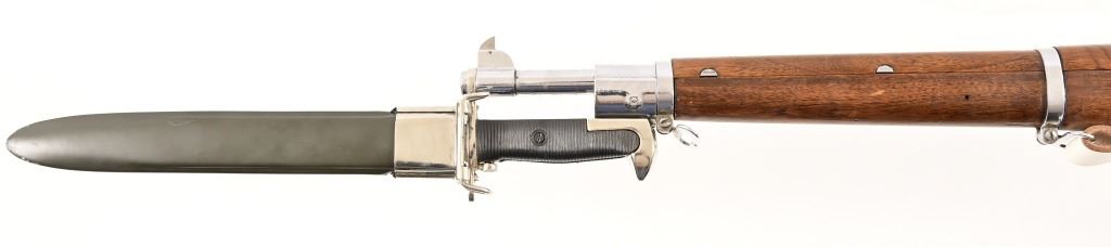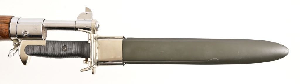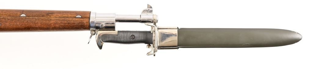SN 3733881. 24" barrel, good bore. For parade/drill purposes this gun has be chrome plated, wood refinished, modern sling. Bayonet is not original, foreign made. Modern.