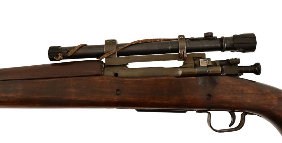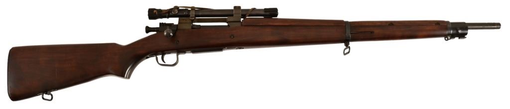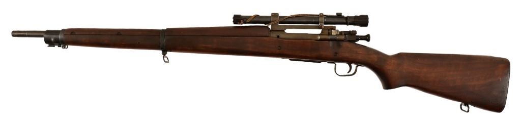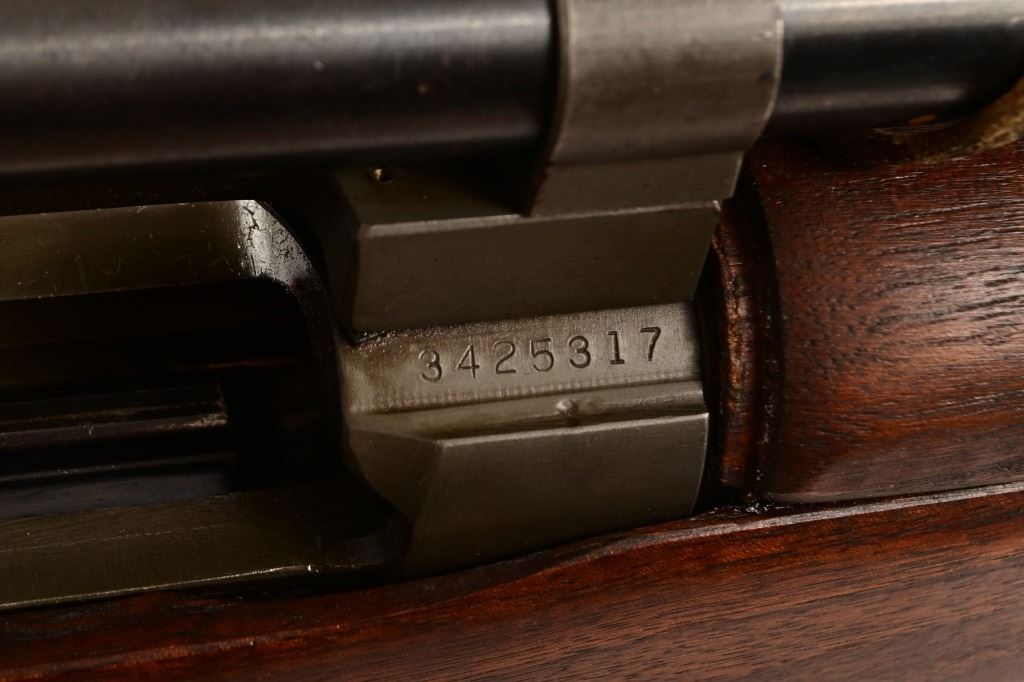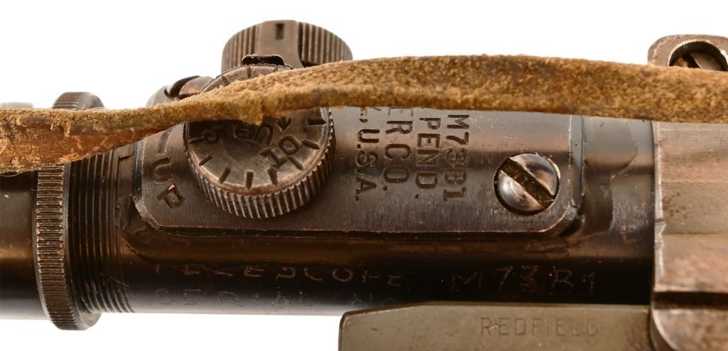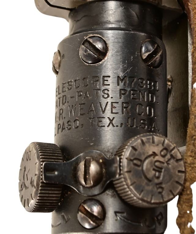 S/N 3425317. Barrel measures 24" with end marked 8-43. Original Weaver M73B1 Telescope with original leather cover. Very good condition stock, bore, and action.