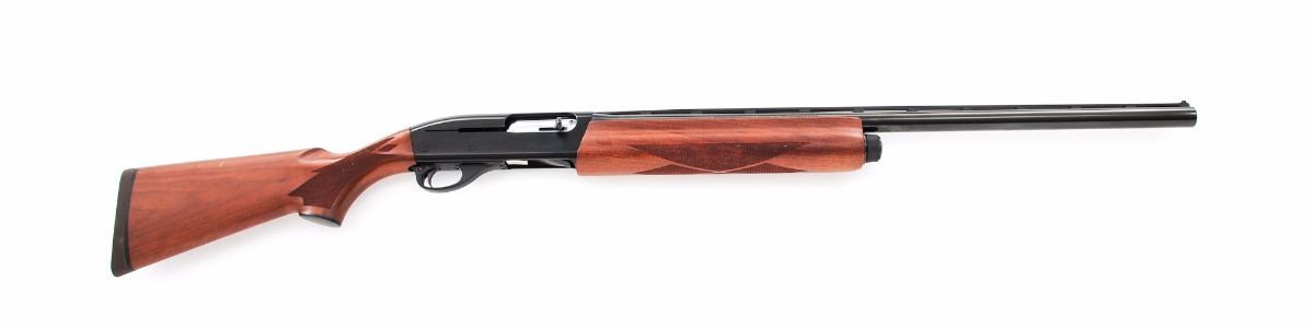 Remington Model 1187 Premier Semi-Automatic Shotgun, #PC223663, 12 ga., 2-3/4'' & 3'' chs., 25-1/2'' vent rib barrel, dark blue finish, checkered pistol-grip walnut stock, decorative black Remington grip cap, factory brown Remington rubber recoil pad, with white bead front sight. Right side of receiver marked ''Premier''. Condition is near excellent with the exception of two moderate impressions to right side of stock and mild flattening to some of the checkering on left side. Metal surfaces retain approx. 99% blue. Action and bore are like new. Est.: $450-$600. (Modern)