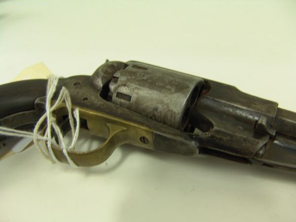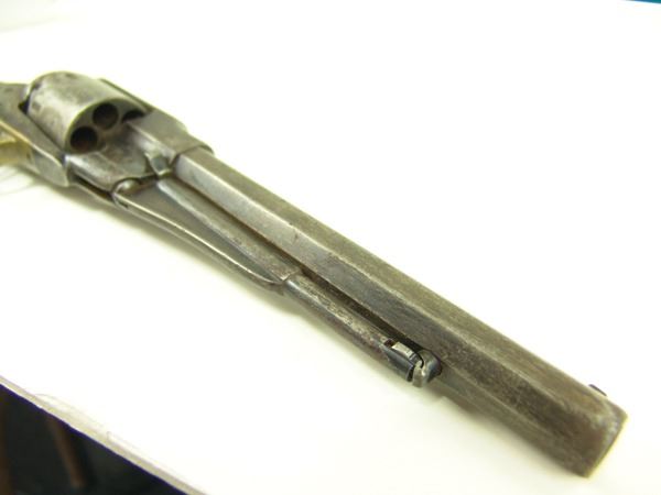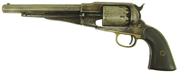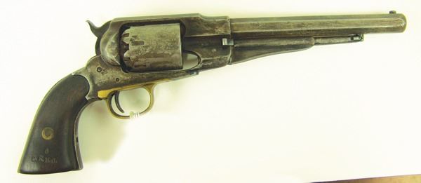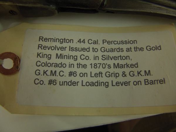 Classic "Old Model Army," .44 caliber six-shot revolver with 8" octagon barrel, this one marked "GKMC" (Gold King Mining Company). These were the weapons issued to their guards in the 1870s. Fair condition.Ca. 1860s8" barrel