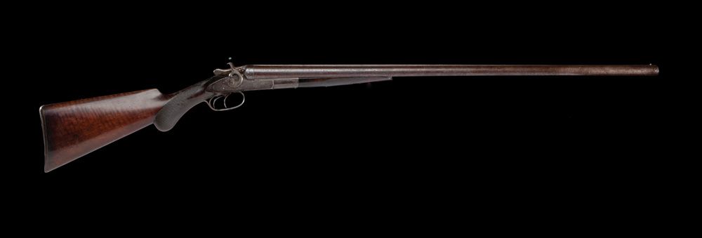 Remington 1889 Shotgun. S/N 30324, circa 1890s, grade 1, 12 gauge, 32" Damascus barrels, excellent wood, round pistol grip, checkered pistol grip and forearm, original Remington butt plate. CONDITION: Very good Damascus print on barrels, scattered black powder pitting the length of the bores, mechanically excellent, wood is sound, frame case colors have silvered.