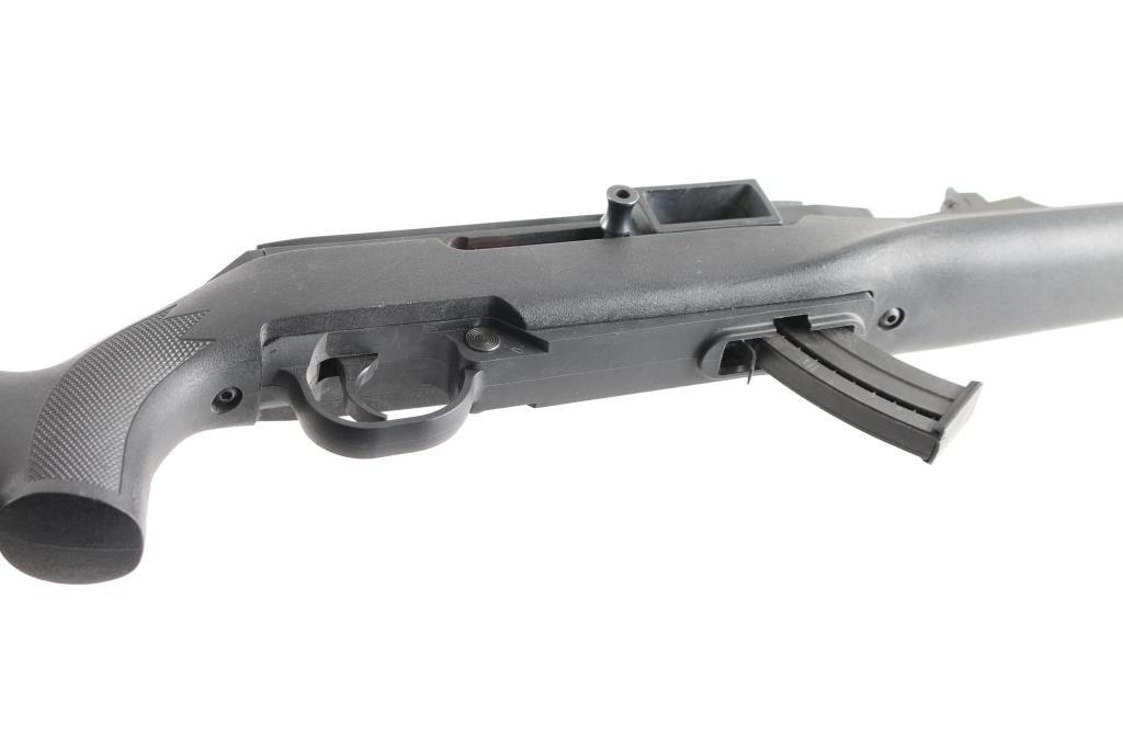 NOTE* Parts/repair rifle, operates well, and fires, but app[ears to be missing the extractor, and possibly the firing pin. Comes with a spring, and pin. Magazine fed semi automatic sporting rifle chambered in .22 Long Rifle. Features a blued 20" barrel, ramped front sight, siding rear adjustable sight. integral scope rail, 10 round magazine, push button safety, smooth trigger, and black synthetic checkered pistol grip shoulder stock. Rifle shows little wear . Action is smooth, bore is very good, and stock is very good. Condition is Needs repair. Modern Firearm.