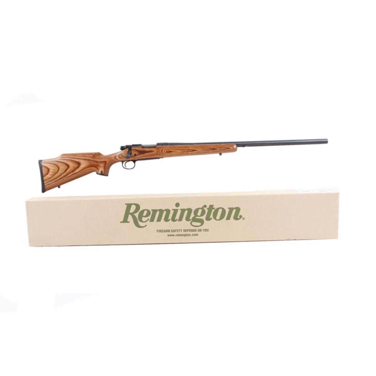 Remington 700VLS Cal .22-250 Rem SN:E6705442, Bolt action varmint hunting rifle in .22-250 Rem chambering. Blued finish, laminated wood Monte Carlo style stock with beaver tail forend, rubber butt pad and sling swivels, 26" heavy barrel with no iron sigSN:E6705442, Bolt action varmint hunting rifle in .22-250 Rem chambering. Blued finish, laminated wood Monte Carlo style stock with beaver tail forend, rubber butt pad and sling swivels, 26" heavy barrel withno iron sights, receiver tapped for scope, good bore and action. Includes original box and manual. Condition: Near new with no sign of use.