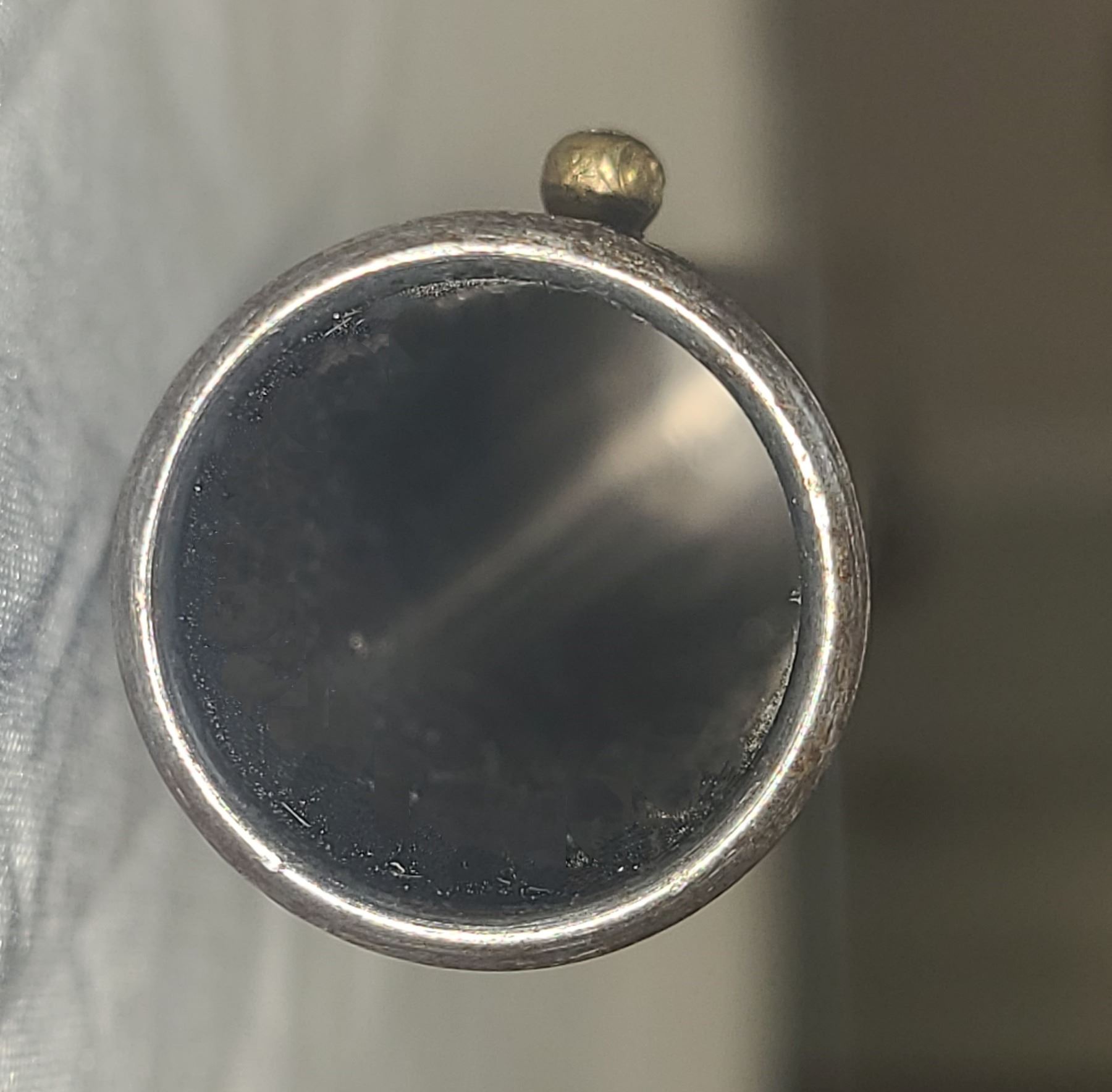 Metal surfaces are blued and now toning to a blue/brown patina in areas, but still