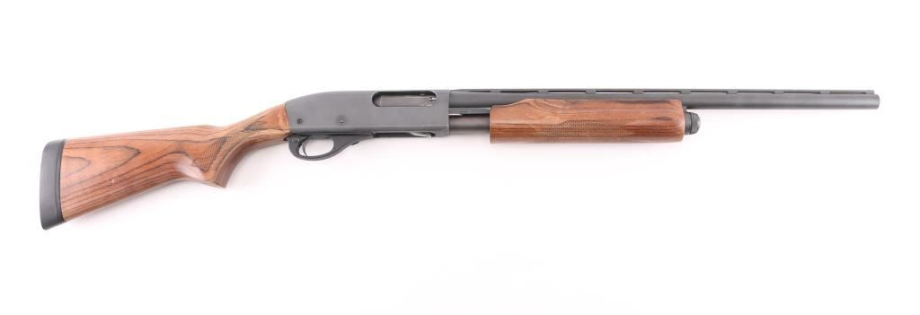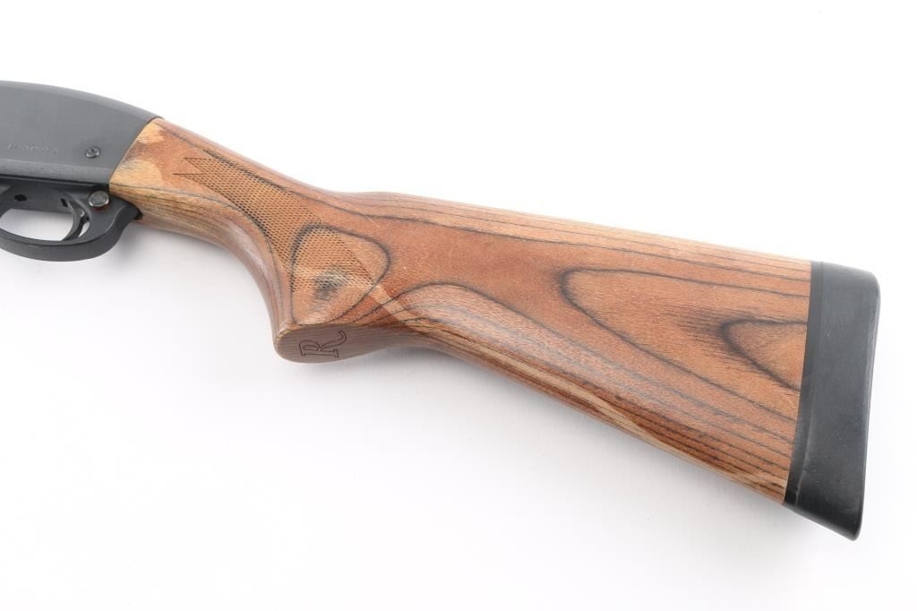 Pump action shotgun accepts 2-3/4" & 3" shells. Features 21" vent rib barrel, choke tubes (MOD installed), Steel bead front sight, manual safety, matte dark gray finish, laminated wood butt & forend, checkering panels at wrist and forend, solid rubber recoil pad. Bore is very good condition. Retains 95% finish with edge losses, handling marks. Butt stock is pristine, very good condition pump handle has some small dings and some small areas of finish loss. Condition is near NRA Excellent *** Modern Firearm ***