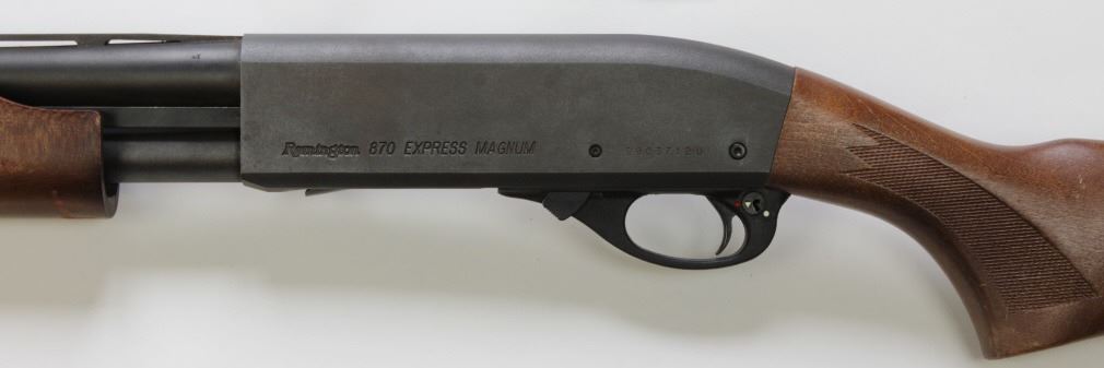 Remington 870 Express 20 ga. Sn 0903712U pump action shotgun showing matte black finish, 28" vent rib barrel and checkered stocks mechanically excellent showing scattered light dings and mars. FFL/Modern. Est. 175-275pump action shotgun showing matte black finish, 28" vent rib barrel and checkered stocks mechanically excellent showing scattered light dings and mars. FFL/Modern. Est. 175-275
