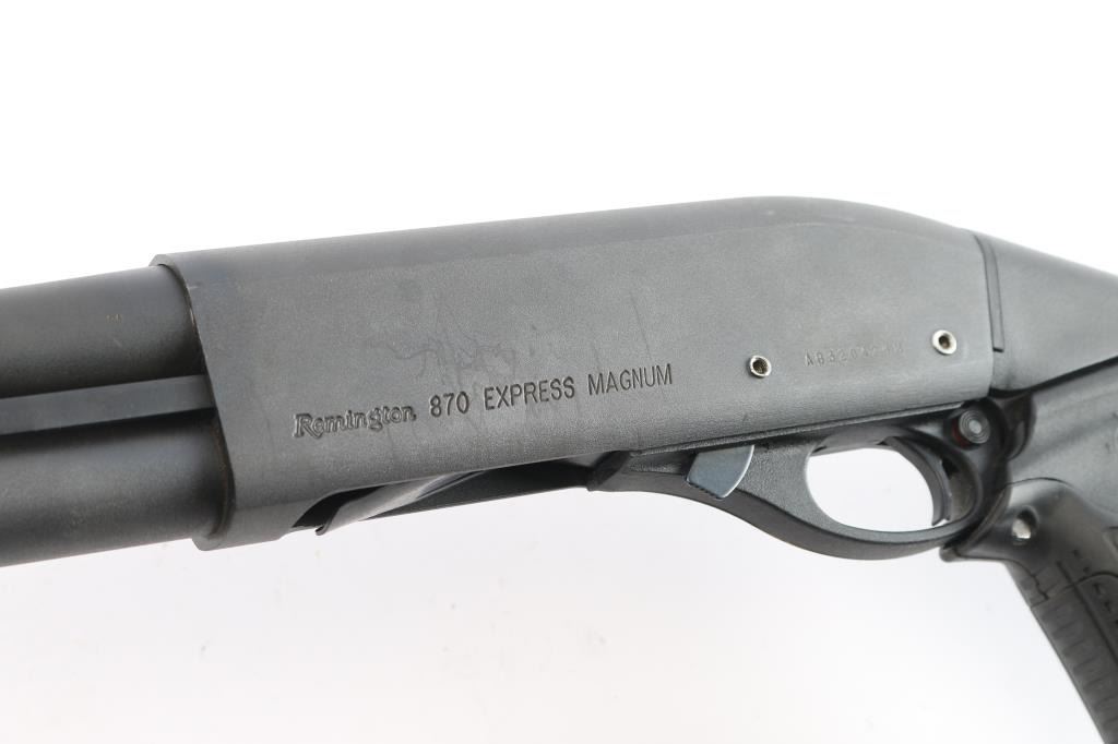 Modern pump action 12ga shotgun chambered for 2 3/4" & 3" shells. Fixed cylinder choke. The 18.5" barrel and receiver have a matte black finish with a synthetic stock, forend,. Raised silver bead front sight. The finish on both barrel and receiver are very good with only minor handling marks. The bore is very good. Blackhawk recoil suppression rear stock with 7 position adjustments, recoil pad and QD ports. Shell carrier pins are in place of trigger group pins.