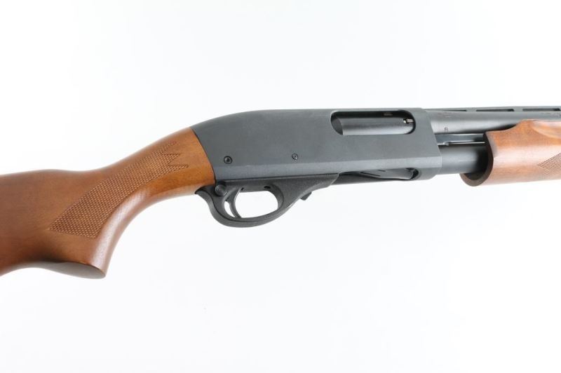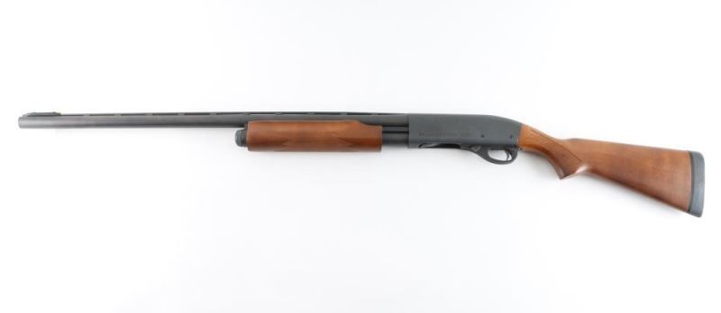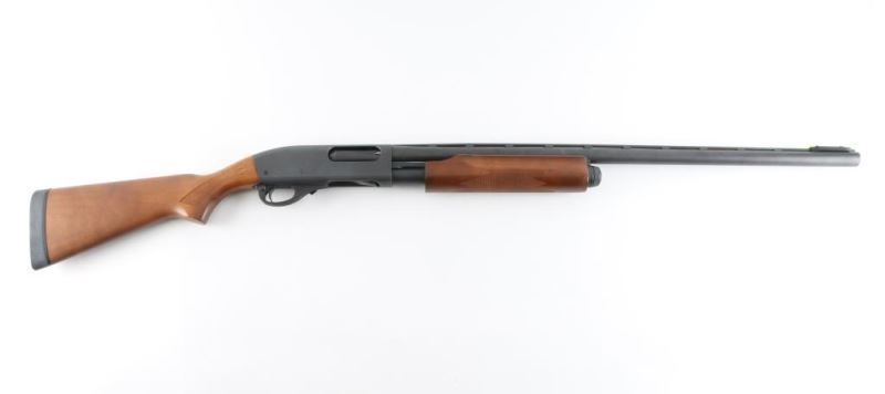 Sn: B567663m Pump action shotgun features matte dark gray finish (appears parkerized), wrap around checkering on the wood pump handle and at the wrist on the shoulder stock with Remington rubber recoil pad. It has a 28" vent rib barrel, accepts choke tubes (MOD installed), silver bead front sight is not visible due to the installation of a long green fiber optic mounted on the rib. It also has a push button safety and a 14" LOP. Bore looks good, dusty. Metal finish shows little to no signs of handling, wood looks the same. Condition is NRA Very Good *** Modern Firearm ***