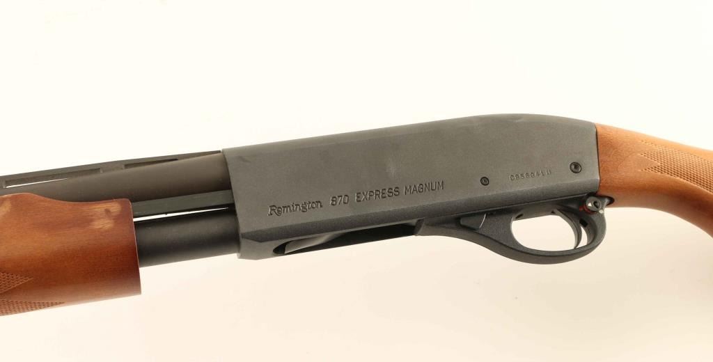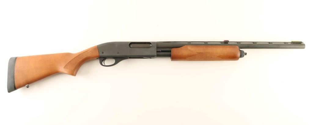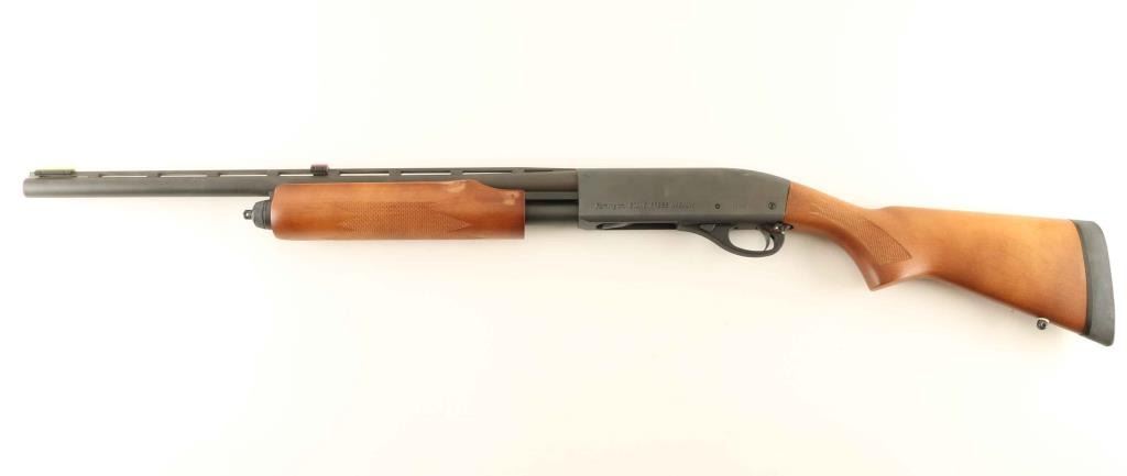 Pump action shotgun. Parkerized Checkered wood stock and forearm with recoil pad. 20 1/2" barrel with ventilated rib. Fiber-optic sights added. bore is very good/shiny, but dirty. Almost new condition. NRA condition-very good plus. Modern Firearm.
