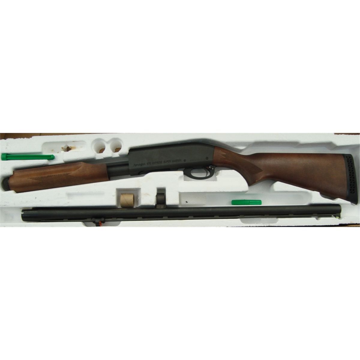 #D58370A; 12 ga. w/3 1/2" chamber & 28" bbl. w/REM choes. Rifle style sights have been addes. Otherwise condition is new in box.