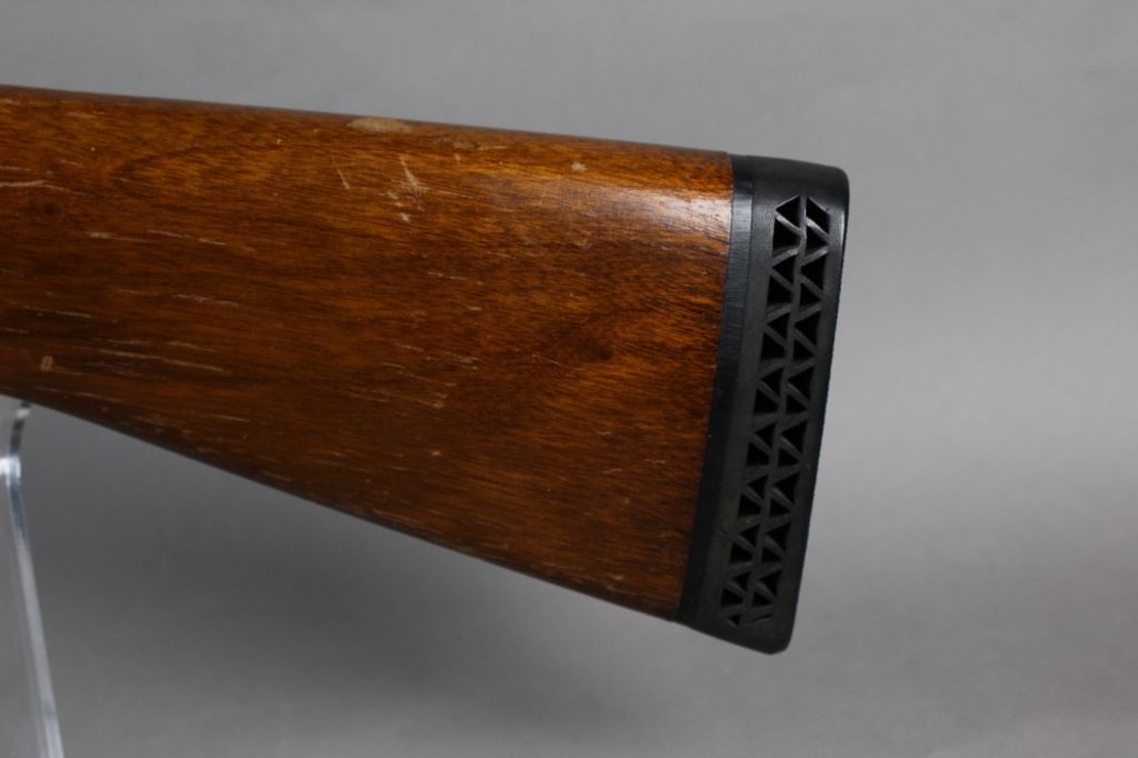 Fair vintage condition. Wood is well worn. Stock has 1 crack. Fixed full choke. Good started gun. SN 572006M
