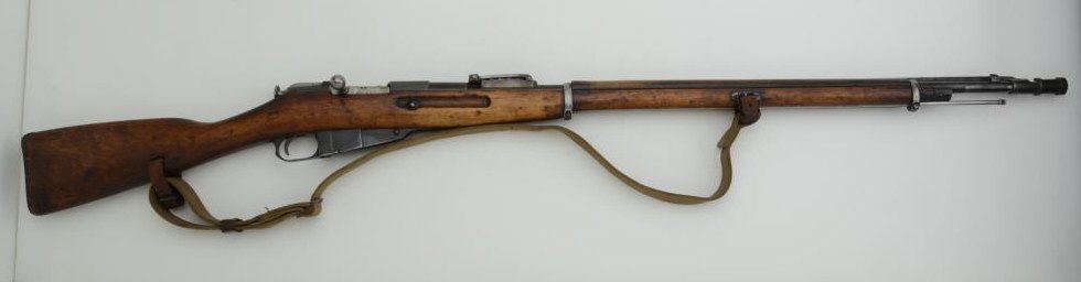 Remington Armory Model 1917 bolt action rifle, Russian crest marked, 7.62mm cal., 32” barrel, blue finish, wood stock, metal cleaning rod, bayonet, woven sling, #355780. This gun is in overall good condition with agood bore, action, markings and wood stock showing scattered wear, mars and scratches from carry and storage. From an old estate. Est.: $350-$700.