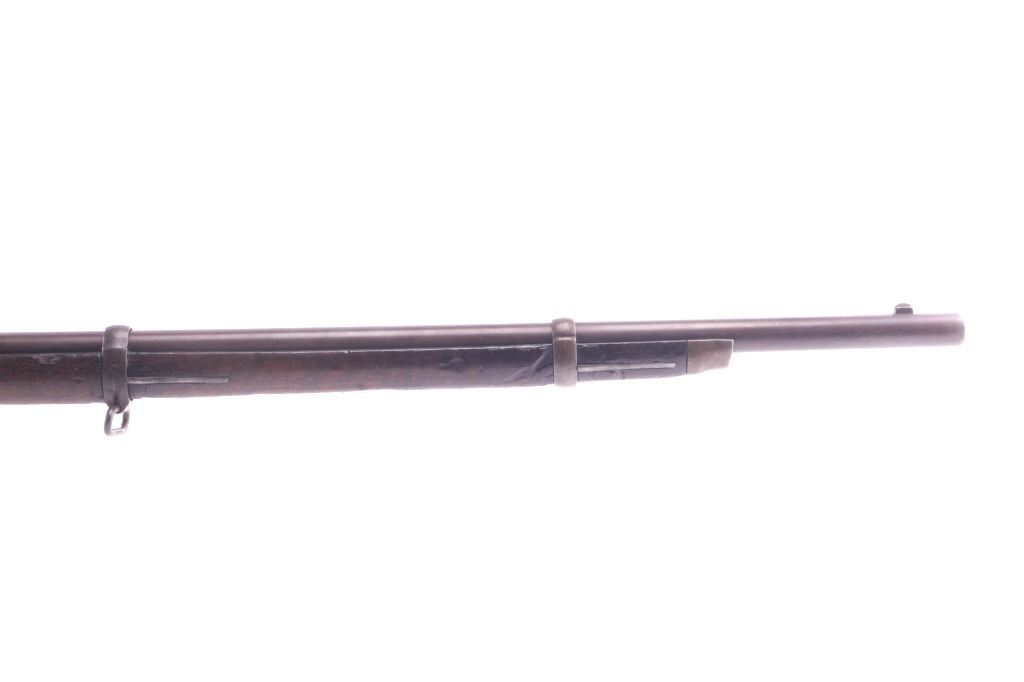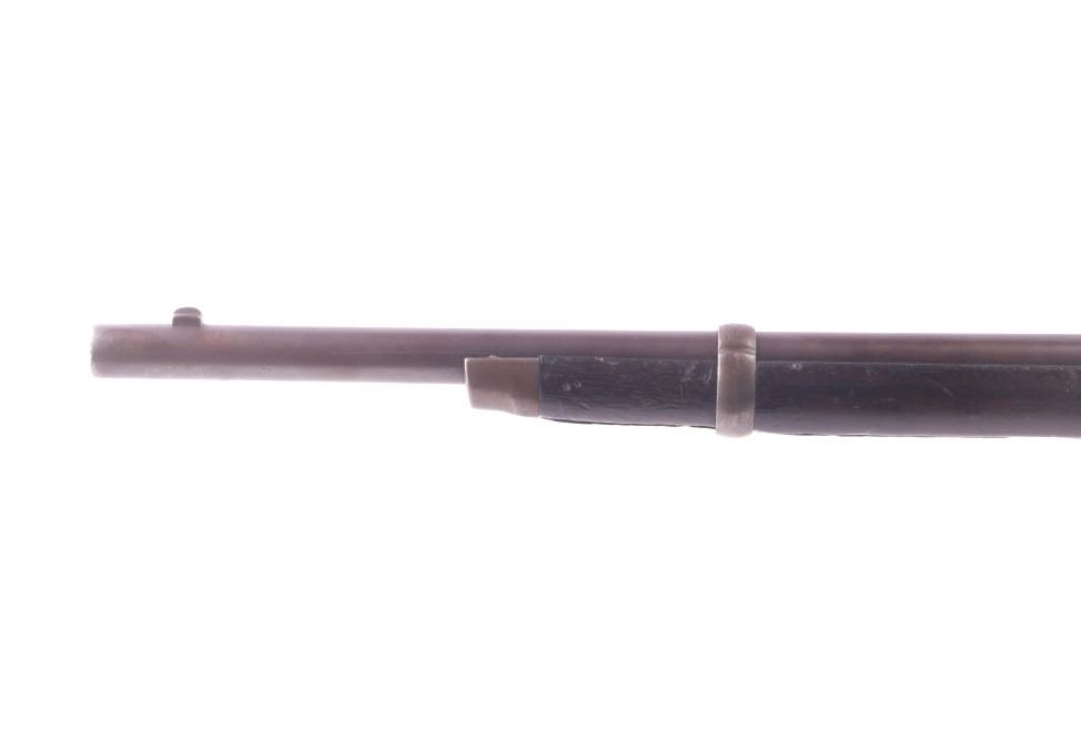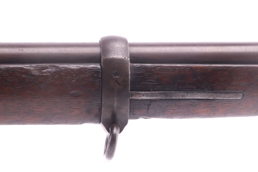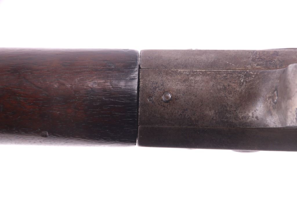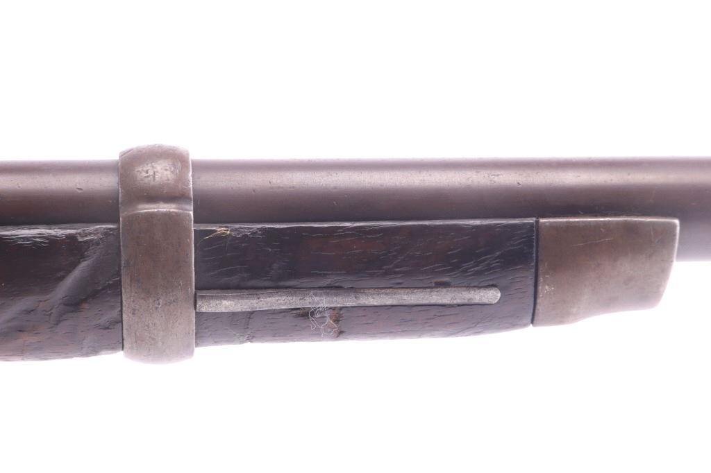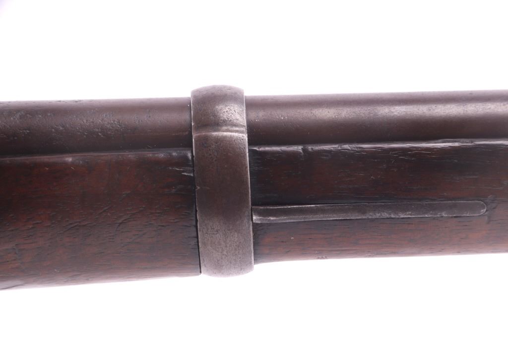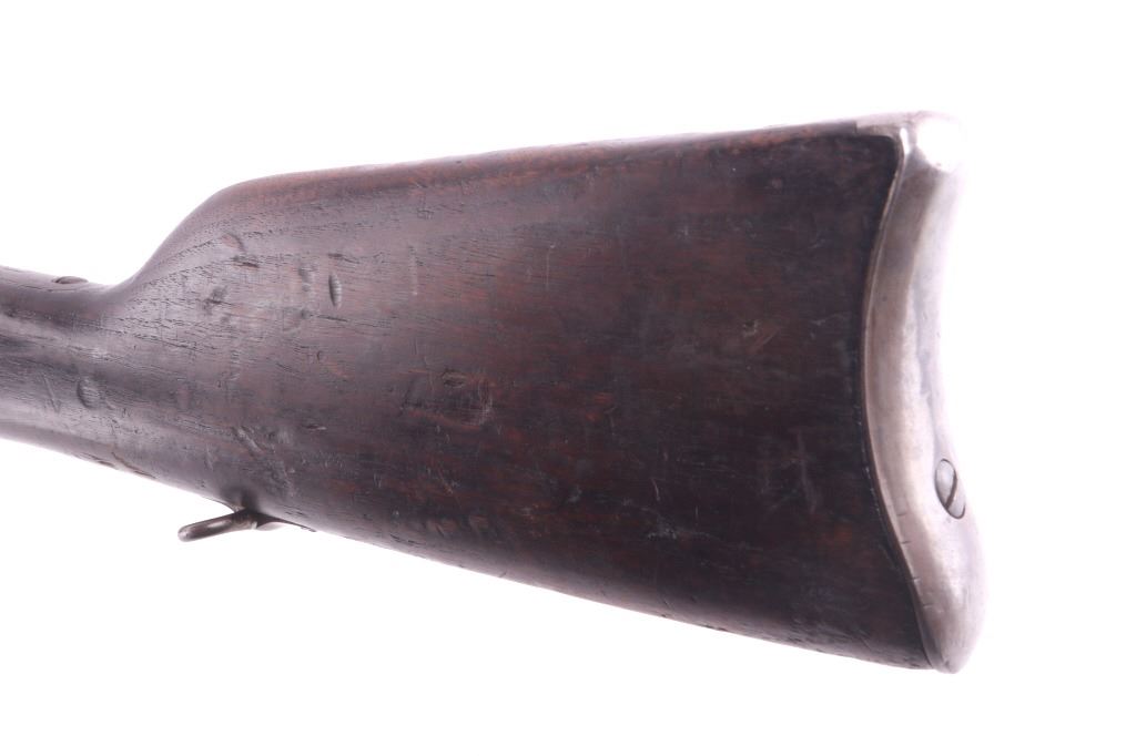Featured in this lot is a Remington Arms Co rolling block rifle chambered in .45 caliber. The rifle displays a 35" long round barrel, rolling block action, blade front sight, adjustable rear sight, and walnut grip and stock. The rifle is marked on the top of the grip "REMINGTON ILION N.Y. U.S.A. PAT MAY 3D, NOV 15th 1864, APRIL 17th, 1866". The rifle displays light pitting across the barrel and wear on the wood due to age. The action shows good mechanical condition with a tight lock and snappy trigger and is missing its ram rod. Serial Number: NSN. This firearm qualifies as an Antique and does not require FFL Transfer or NICS Background Check.