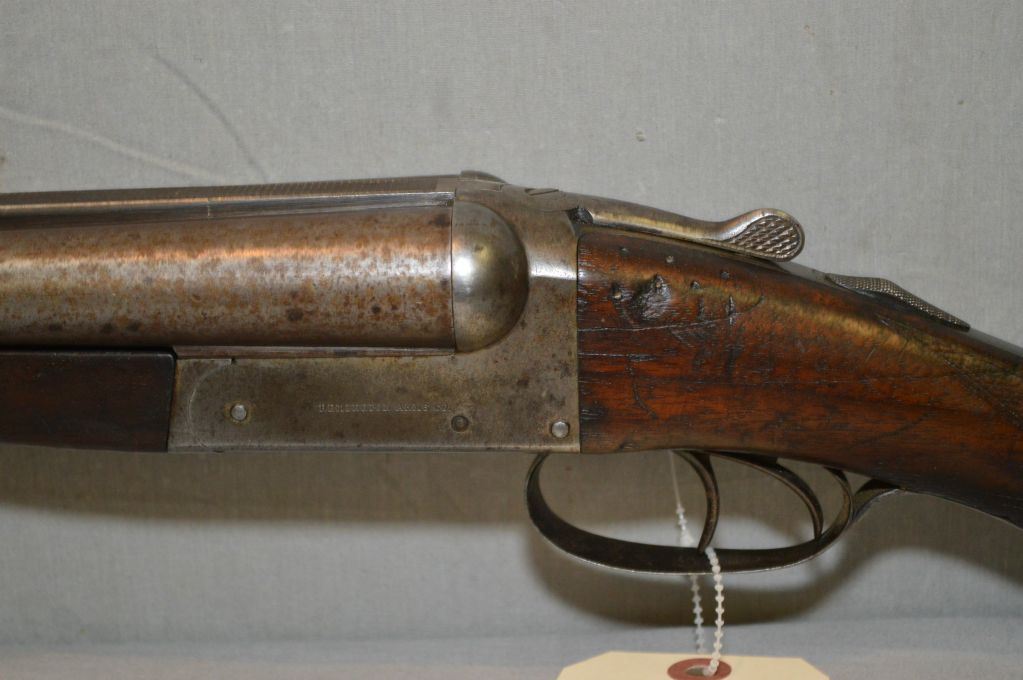 Remington Arms Model 1900 .12 Ga Side By Side Hammerless Shotgun w/ 30" bbls [ traces of blue turning brown, traces of flaking case color on receiver turning silver, rounded checkered pistol grip stock & forend, w/few cracks near RA butt plate, (43) ] Ser # 326334