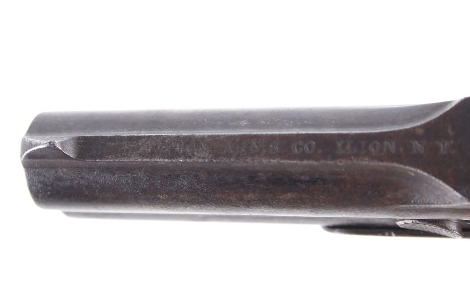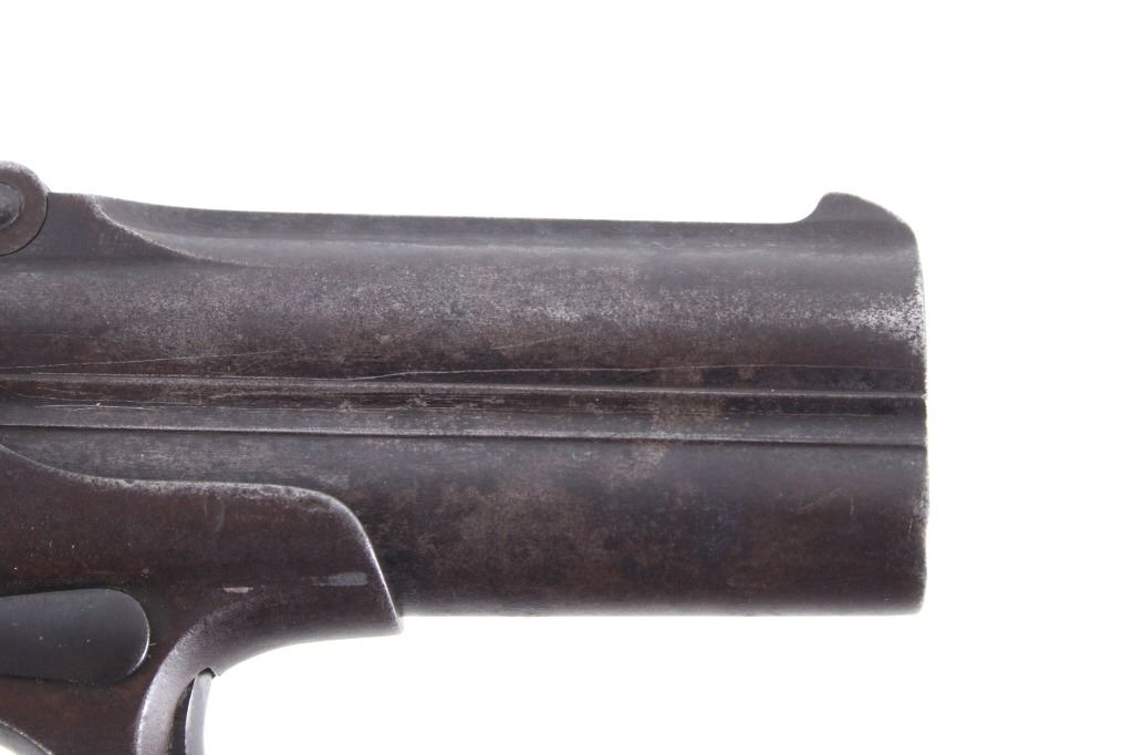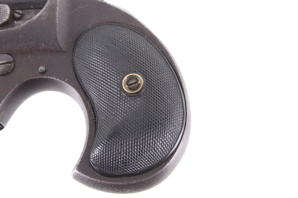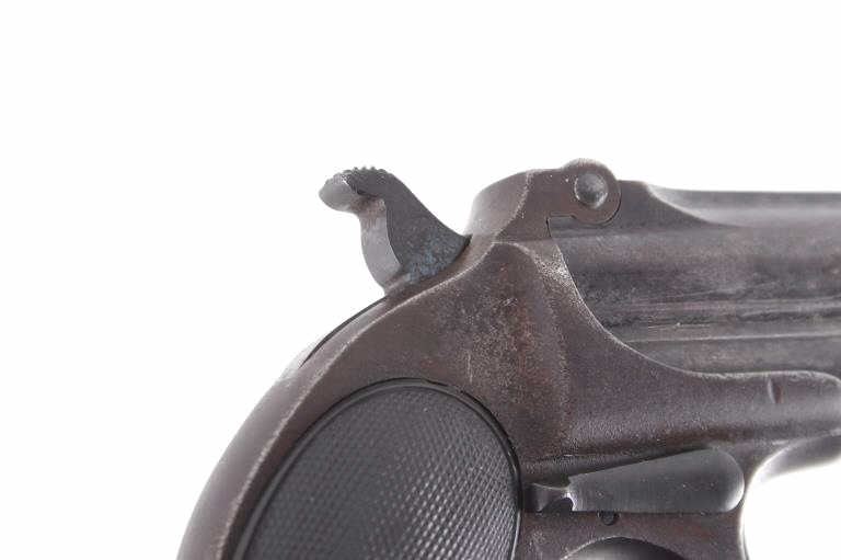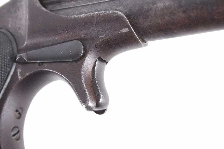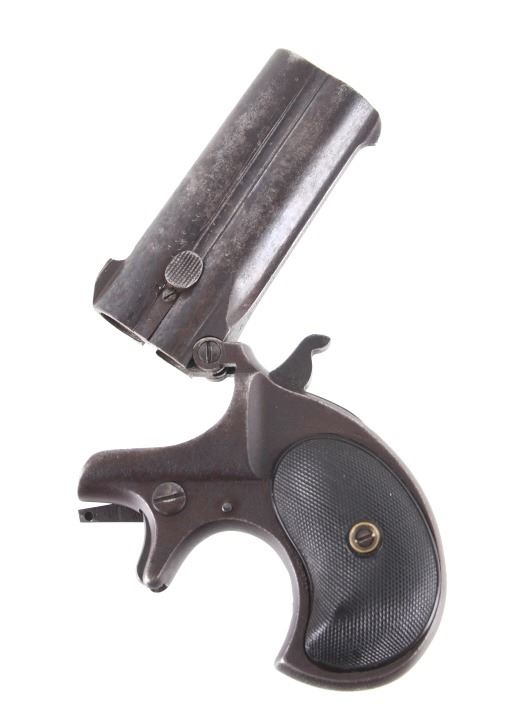 Featured in this lot we have a Remington Arms Type II O/U Derringer pistol chambered in the .41 rimfire caliber. This Remington 1866 Derringer Type II was manufactured between 1888-1911 by Remington. The Remington 1866 was later given a model designation in the early 1920's and were later designated as Model 95's. The Remington Double Derringer was one of the most iconic pocket hide-out weapons in American history, the Remington Double Derringer was chambered for the short .41 Rim Fire. This pistol displays two 3" barrels, compact frame, spur trigger, and hard rubber grips. The barrels were locked in place for firing by a rotating lever on the right side of the frame. The firing pin alternated from top barrel t bottom barrel automatically. The barrel is marked across the top rib reading "REMINGTON ARMS CO. ILION, N.Y.". The pistol shows good condition overall for its age with functional mechanics. The derringer weighs 10oz. Serial Number: 222. This firearm qualifies as a Curio & Relic firearm, and requires FFL Transfer or NICS Background Check.