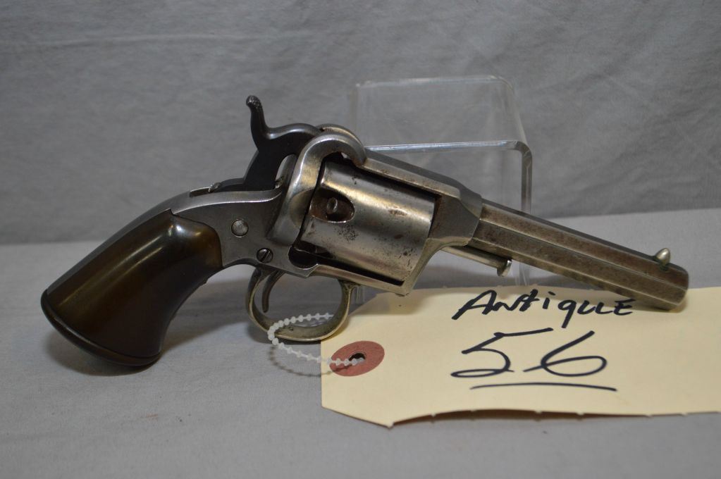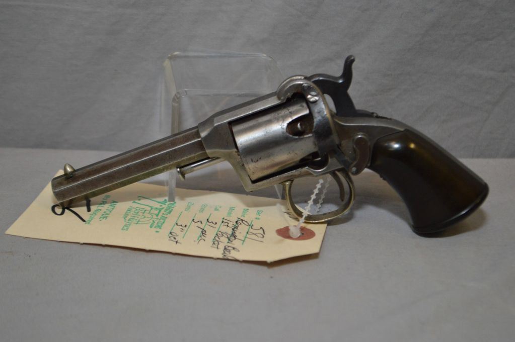 Remington - Beals Model 1 St Model Pocket .31 Perc Cal 5 Shot Revolver w/ 3" octagon bbl [ fading blue finish, case hardened hammer, german silver trigger guard, gutta percha smooth finish grips, barrel markings F.Beals Patent June 24, 56, May 26, 57, frame marked on top "Manufactured by Remingtons ILION, N.Y., Total Quantities Estimated 4,500 - 5000 Circa 1857 - 1858 ] Ser # 581 ANTIQUE NO PAL REQ