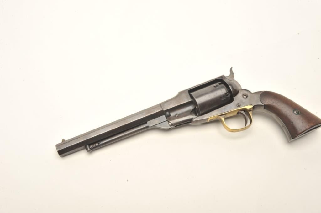 Remington Beals Navy percussion revolver, .36 caliber, 7.5” octagon barrel, re-browned finish, wood grips, S/N 5581, in overall good to very good condition with a crisp action, sharp markings and very good grips.(Antique). Est.: $600-$1,200.
