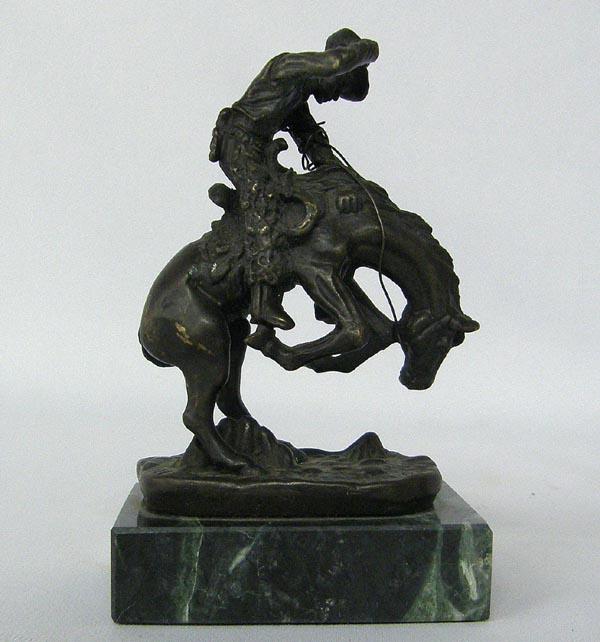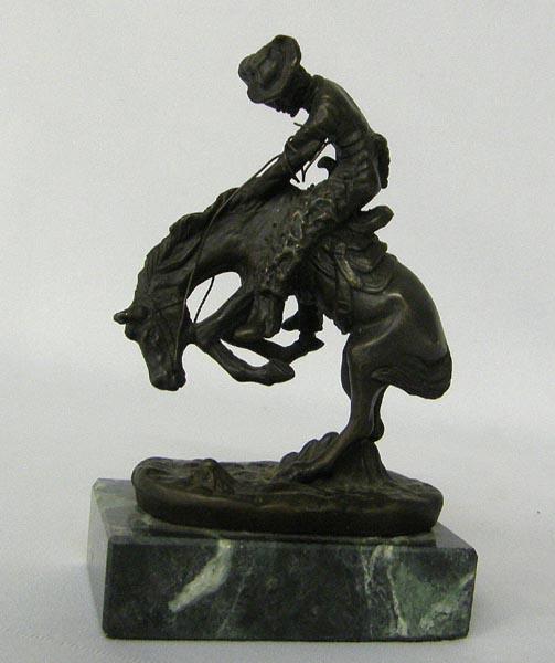 Remington Bronze Restrike Bronc Rider, measures approx. 5.5'' x 3''. SHI $20.