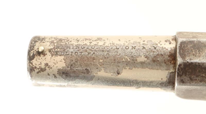 FAIR: Some major parts replaced; minor replacement parts may be required; metal rusted, may be lightly pitted all over, vigorously cleaned or re-blued; rounded edges of metal and wood; principal lettering, numerals and design on metal partly obliterated; wood scratched, bruised, cracked or repaired where broken; in fair working order or can be easily repaired and placed in working order.