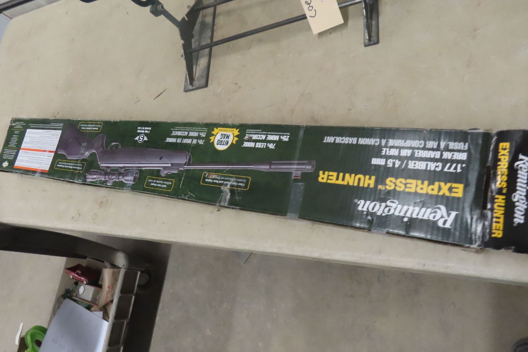 Remington Express Hunter .177 Pellet Rifle in Box - No Pal Required. MUST HAVE A VALID PAL TO BID. WE CANNOT SHIP AMMO/PRIMERS. IF YOU REQUIRE SHIPPING AND BID ON AMMO, YOU WILL BE RESPONSIBLE TO PAY FOR IT AND RESELL IT UNDER YOUR CONSIGNMENT IN THE NEXT GUN AUCTION.