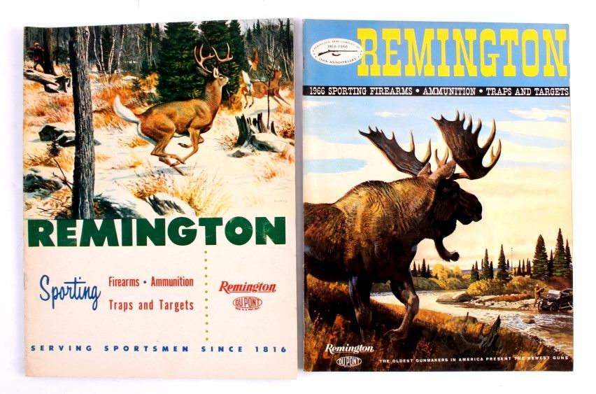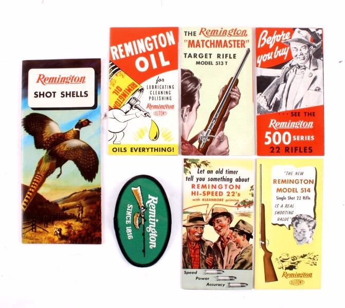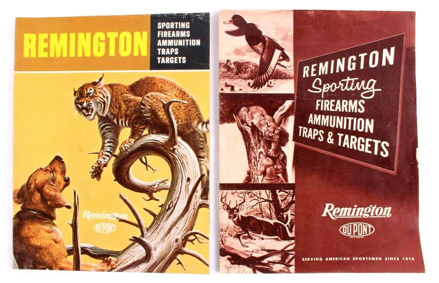 This is a collection of Remington Firearms catalogs from the 1950's to the 1980's. Also included are several brochures for Remington Oil, shot shells, rifles, etc. The Remington catalogs are in good condition. Each one measures 8.25" x 11".