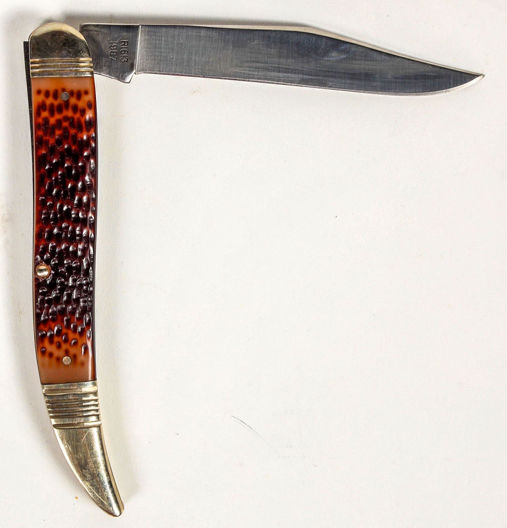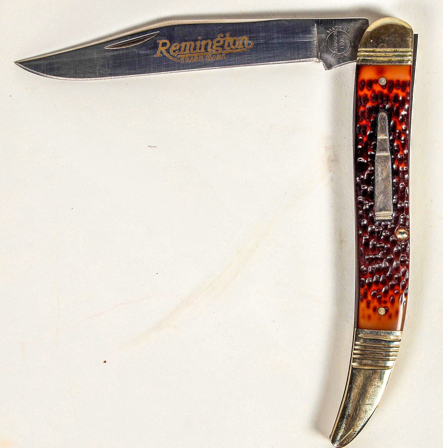 This is a Remington Bullet Knife model R1613 Fisherman at 5. in. closed. Delrin scales and nickel bolsters. Like new in the box with paperwork. Please see photo for details.