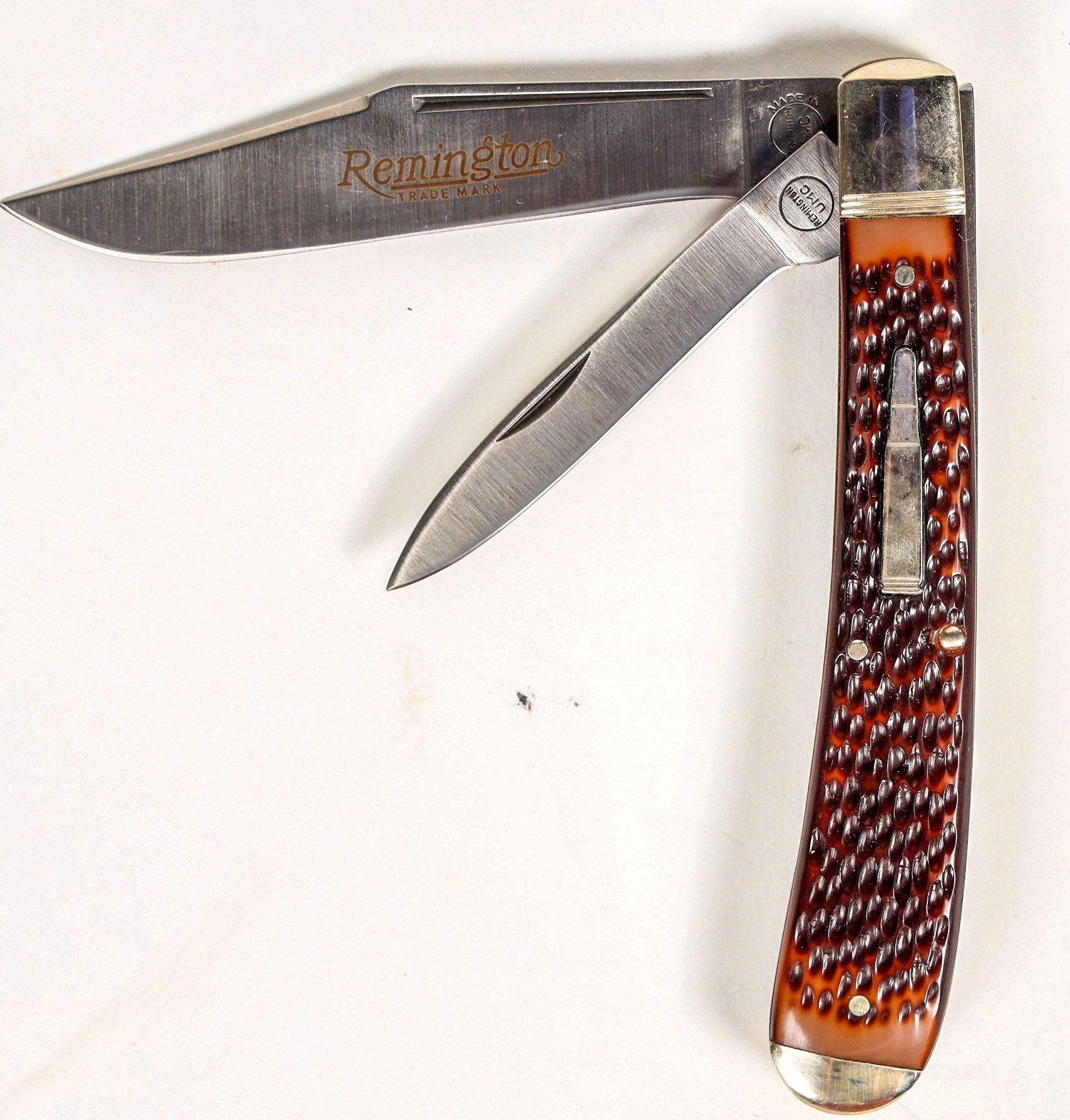 This is a Remington Bullet knife model Hunter R 1263 like new in the box with paperwork. At 5. in. closed, delrin scales and nickel bolsters. c. 1986. Please see photos for details .
