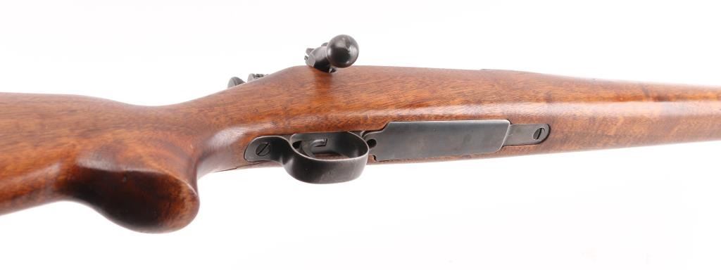 GOOD: Some minor replacement parts; metal smoothly rusted or lightly pitted in places, cleaned or re-blued; principal letters, numerals and design on metal legible; wood refinished, scratched bruised or minor cracks repaired; in good working order.