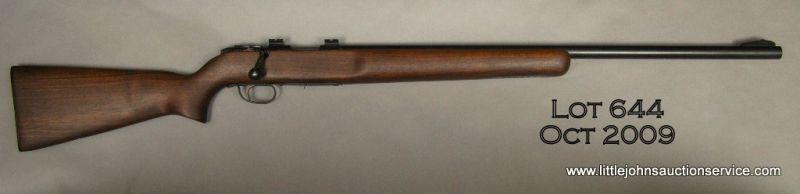 Remington Matchmaster Model 513-T bolt action rifle, .22LR cal., 27” round barrel, black finish, heavy wood stock, #NVSN. This gun is in overall excellent condition showing approx. 99% original finish, fine bore, action, markings and wood.Importantly, this gun is also “U.S. Property” and “Military Finish” on the top of the barrel; scope mounts also present. Est.: $250-$500.