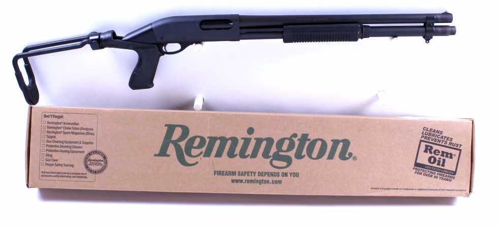 Remington Mdl 870 12 ga SN:AB57069MPump action tactical shotgun with 20" barrel, matte black finish with rubber coated Knoxx Spec Ops folding stock and grooved pump handle, excellent bore and action. Includes box and manual.Condition: Excellent.
