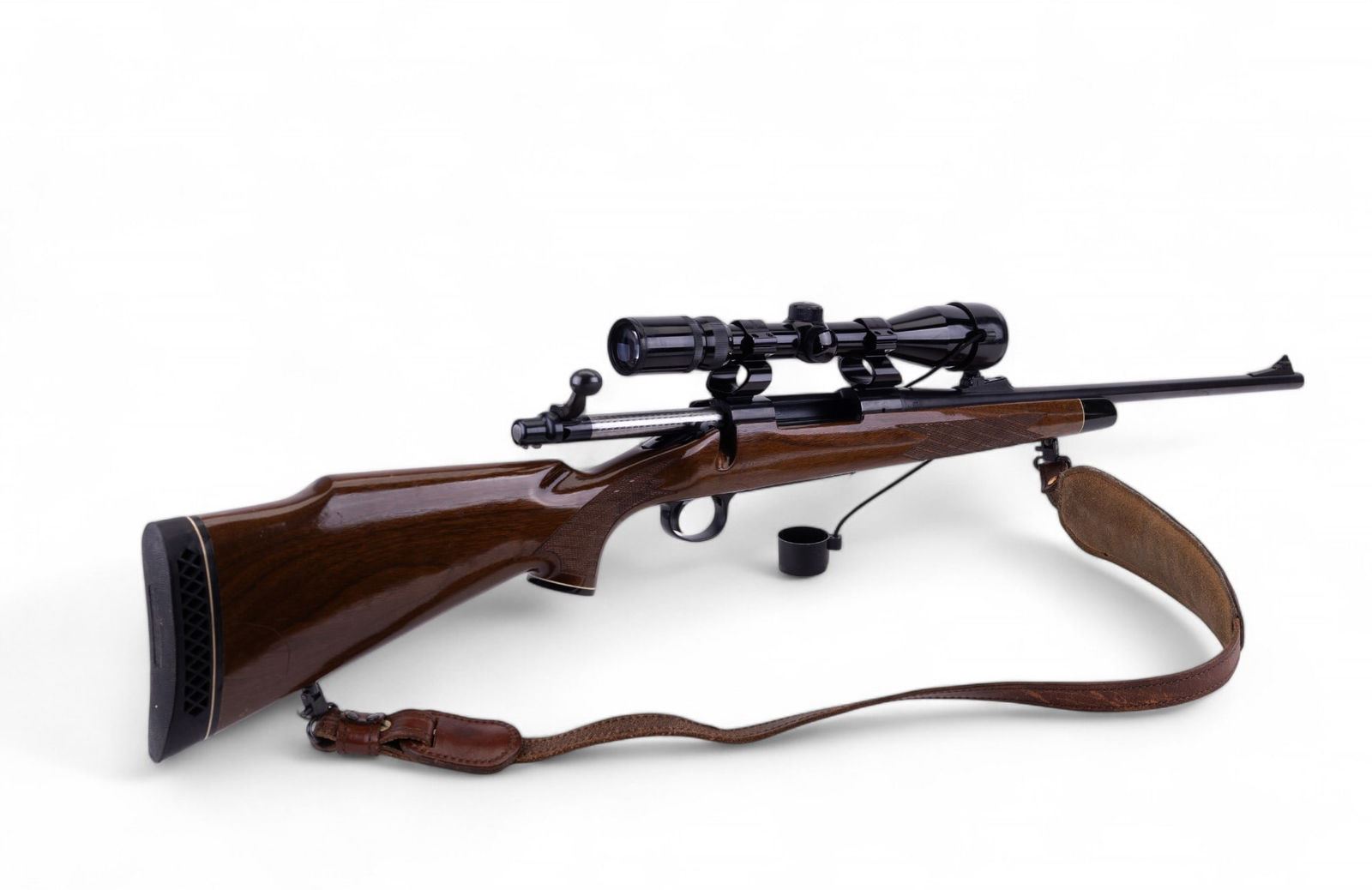 Rifle. Remington Model 700 BDL Right-Handed and takes 30-06 sprg. Has an etched stock and Bushnell Scope with no fogging and leather strap. Iron has nice bluing and nice walnut stock.