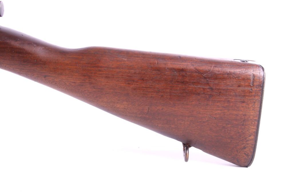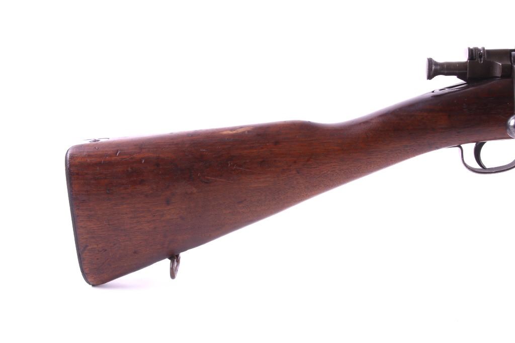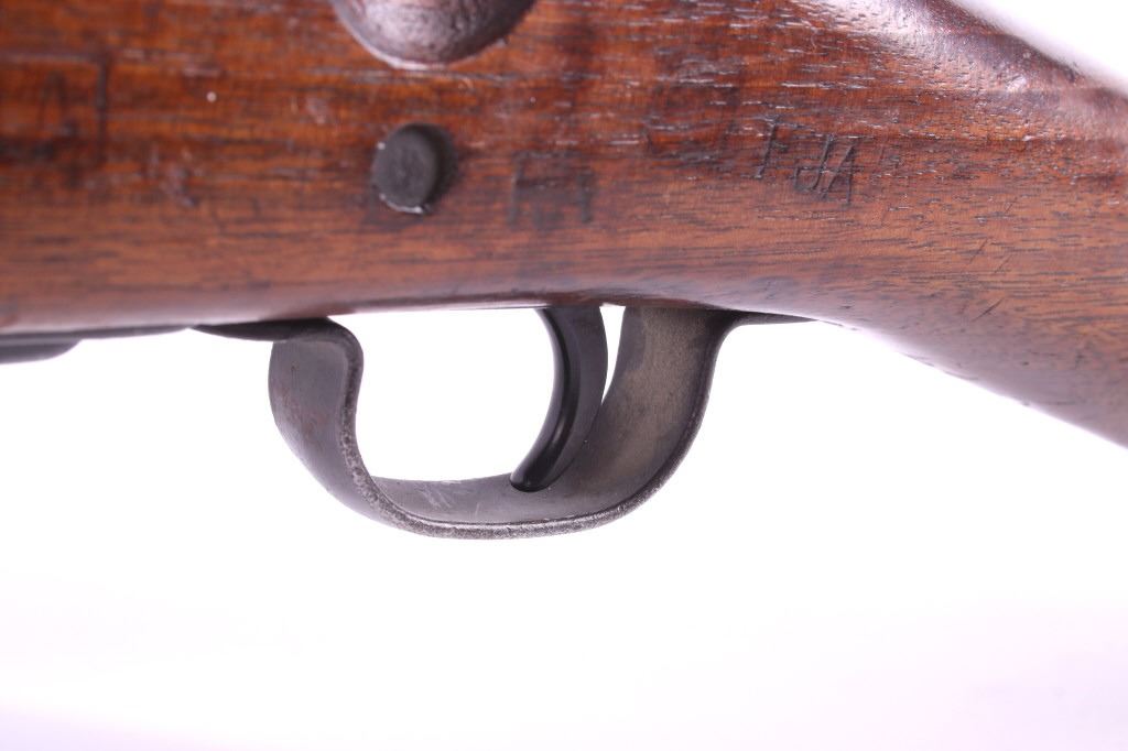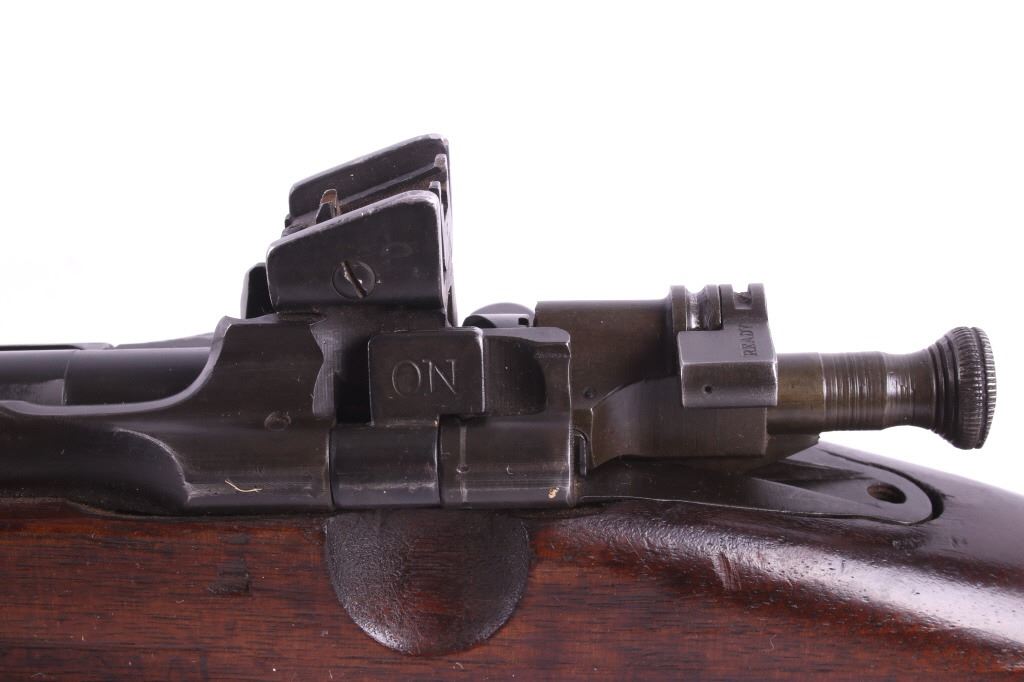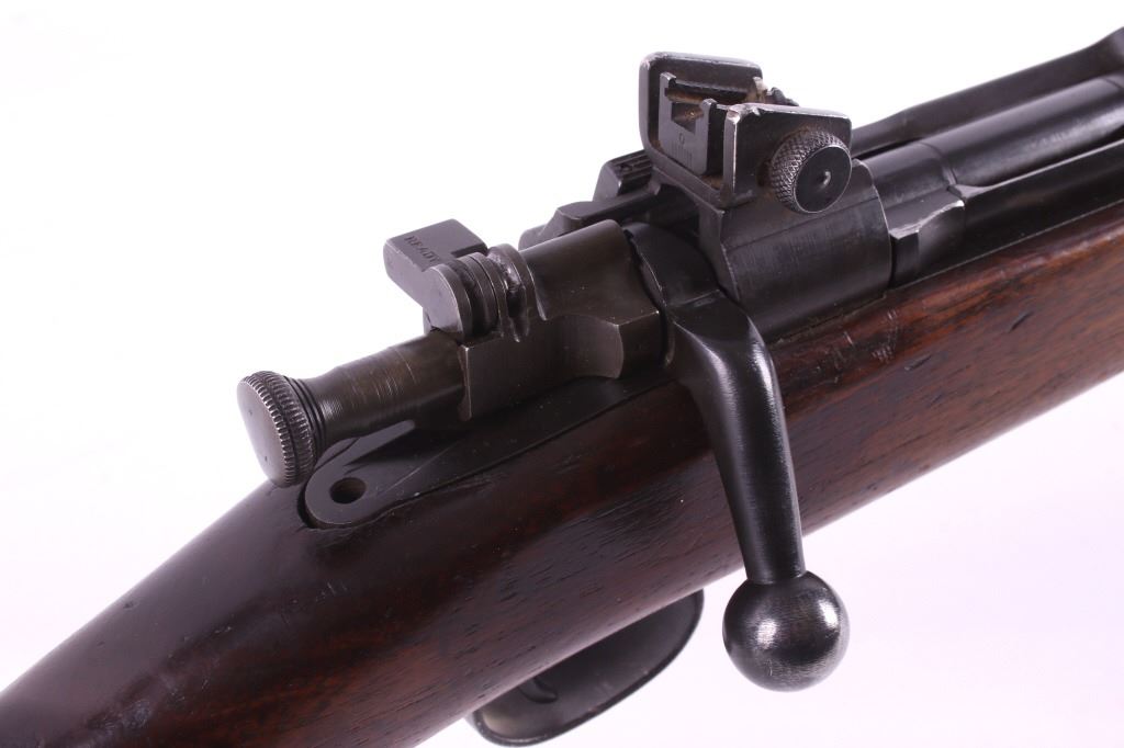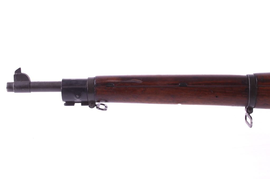 For your consideration is a Remington model 03-A3 bolt action rifle. The rifle has the correct Remington "R" marked bolt with the handle milled for scope clearance. The sling swivel, trigger guard, lower barrel band, upper sling swivel and upper barrel band are correct. The barrel is correctly fitted with a front sight and rear sight, reticle is missing from the rear sight. The receiver has the distinctive markings that consist of "U.S. - REMINGTON - MODEL 03-A3" on the left side of the receiver between the edge of the stock and the telescopic sight base. The right side of the receiver is roll-stamped with the serial number "4101166". The barrel is roll-stamped with "R A" above the Ordnance "Shell & Flame" insignia and the date "9-43". This rifle is in excellent condition and retains the original metal butt stock. This rifle qualifies as a Curio & Relic Long Gun, and requires FFL Transfer or NICS Background Check. Serial Number: 4101166