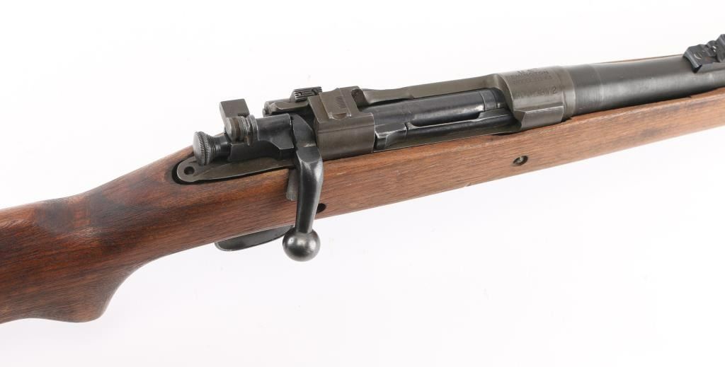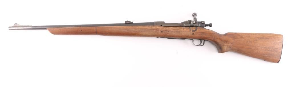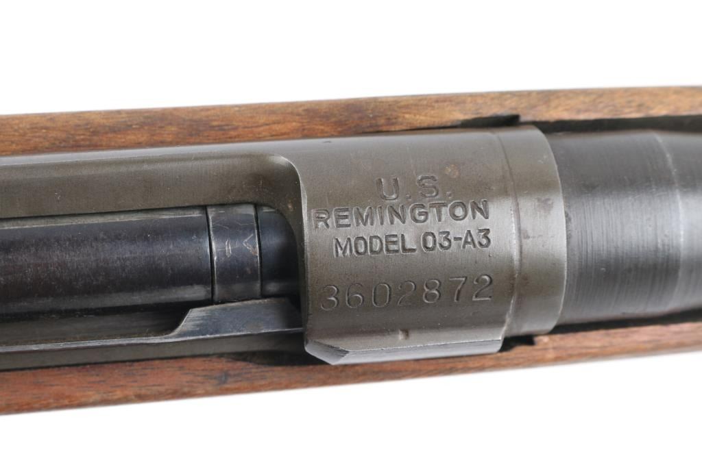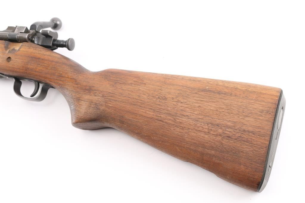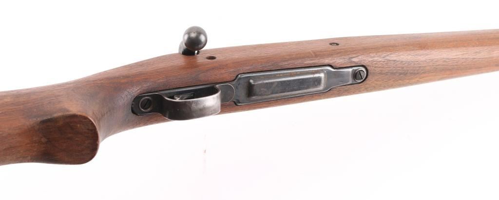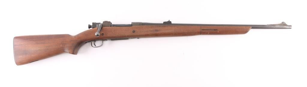 Partially sporterized bolt action rifle built using a US military 1903A3 rifle action. Features 24" tapered barrel, ramped front sight base with blade, Williams adjustable sight mid-barrel, original rear sight removed, bent bolt handle, original military type flag safety, USGI walnut pistol grip stock with cut-down forend, rear swivel removed, stamped bottom metal, trap door in military buttplate. Bore is good to very good condition, might improve with cleaning. Retains 80% coverage of parkerized finish, blemished and worn where the front sight was installed, with edge losses and handling marks. Wood is very good as modified, the rear band step has been blended out, shows dents and other signs of use. Barrel channel fit is fair. Condition is NRA Very Good as modified *** C&R Firearm ***