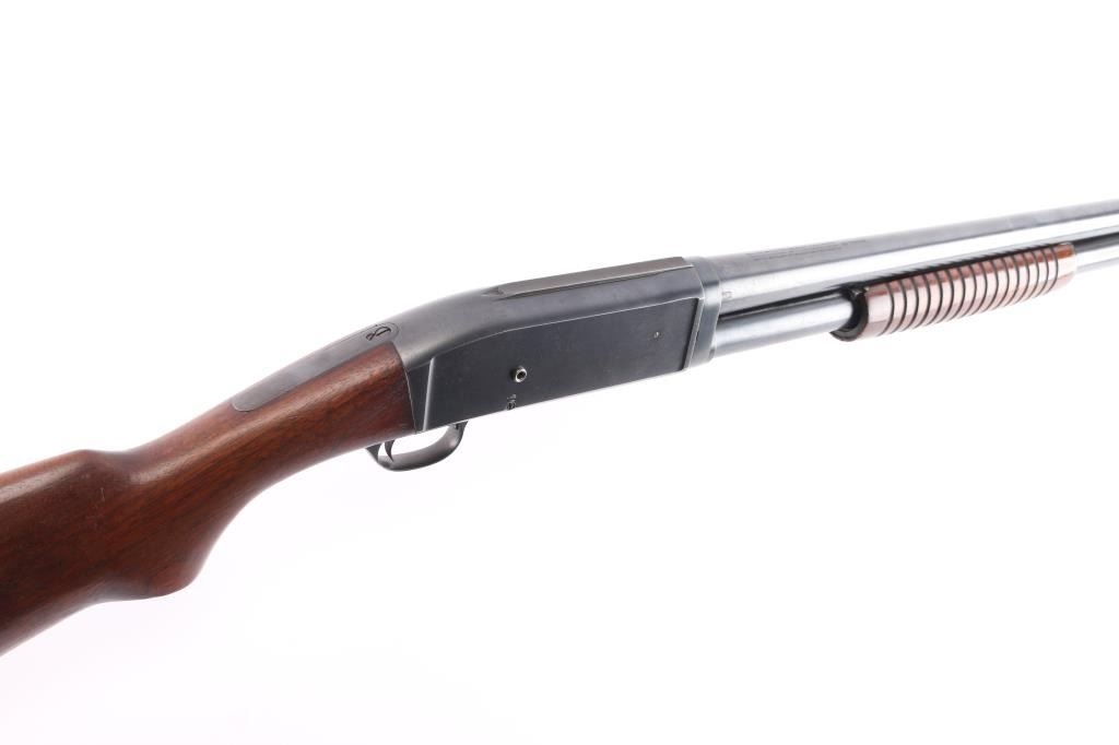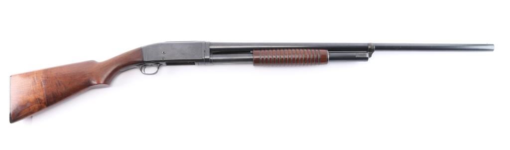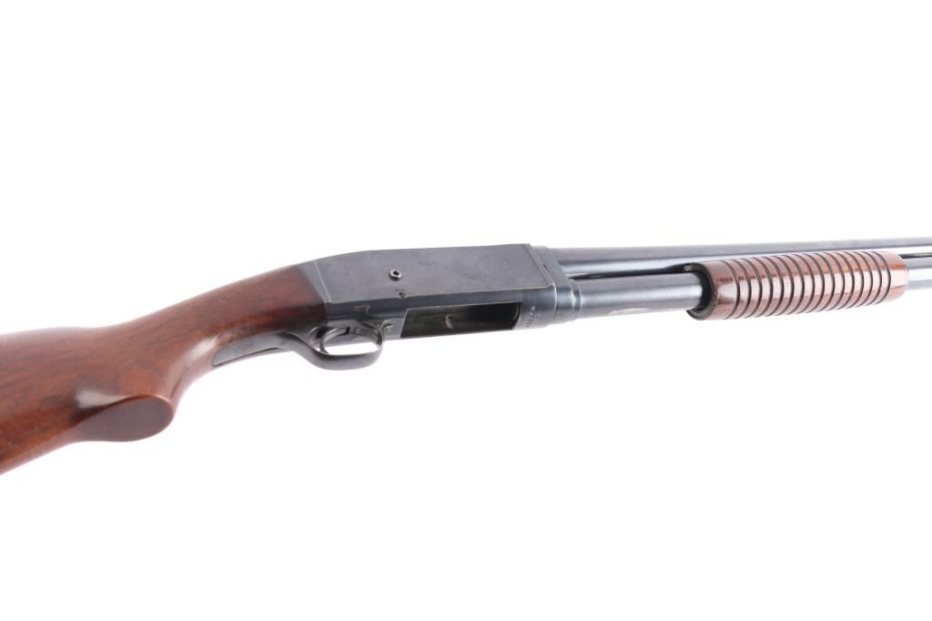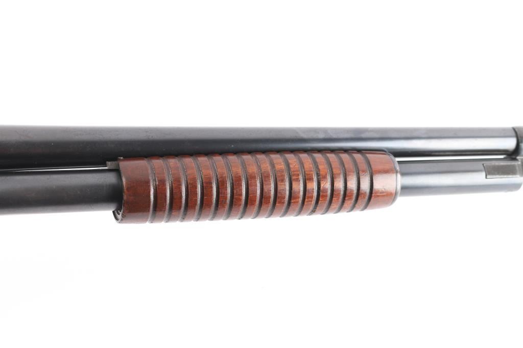 Vintage slide action repeating shotgun chambered for 2 3/4" 12 gauge shells. Manufactured in Ilion, NY circa 1922.