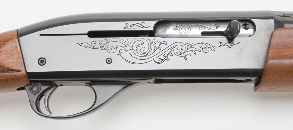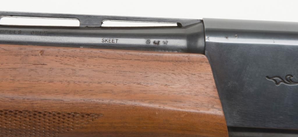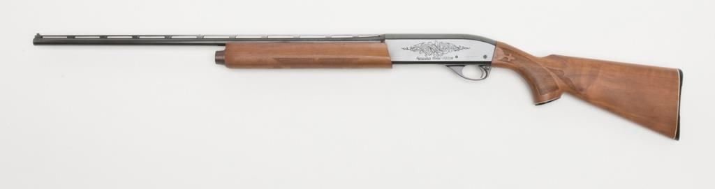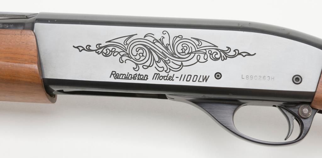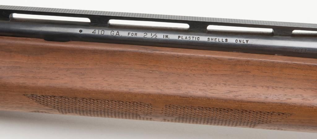 Remington Model 100LW semi-auto shotgun, .410 gauge, for 2-1/2” plastic shells only, Skeet choke, 25” ventilated rib barrel, blue finish, wood stocks, #L890263H in overall very good to fine condition showing the majority of itsoriginal blue finish, fine bore, action, markings and wood. (Modern). Est.: $250-$500.