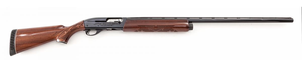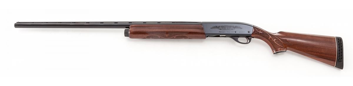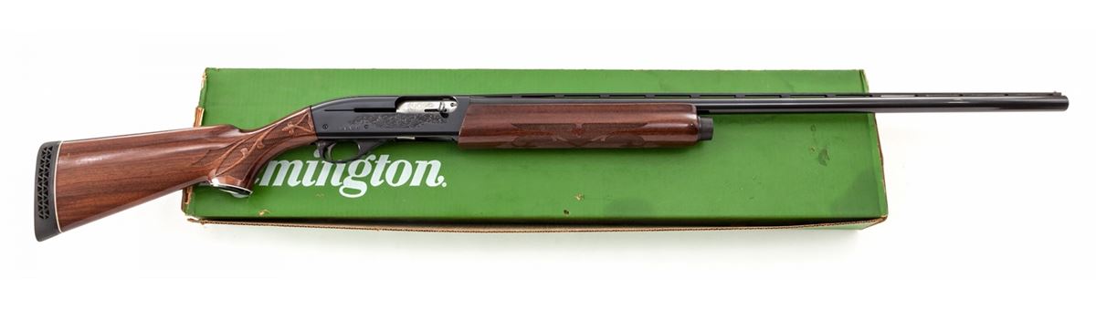 Remington Model 1100 Magnum Semi-Automatic Shotgun, #N681852M, 12 ga., 30'' vent rib barrel choked Full for 2-3/4'' or 3'' shells, pressed checkered walnut stock, in original box. Condition is excellent, appearing as new, just lacking instructions. Exterior of box with light staining. Est.: $450-$600. (Modern)