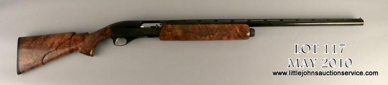 Remington Model 1100 #R191583V, 12 ga. target contour-sporting 12 with custom Joe Shisaki burled stock. Near fine used condition, some small marks on wood, slight use and wear, fine interior. Est. $400-800