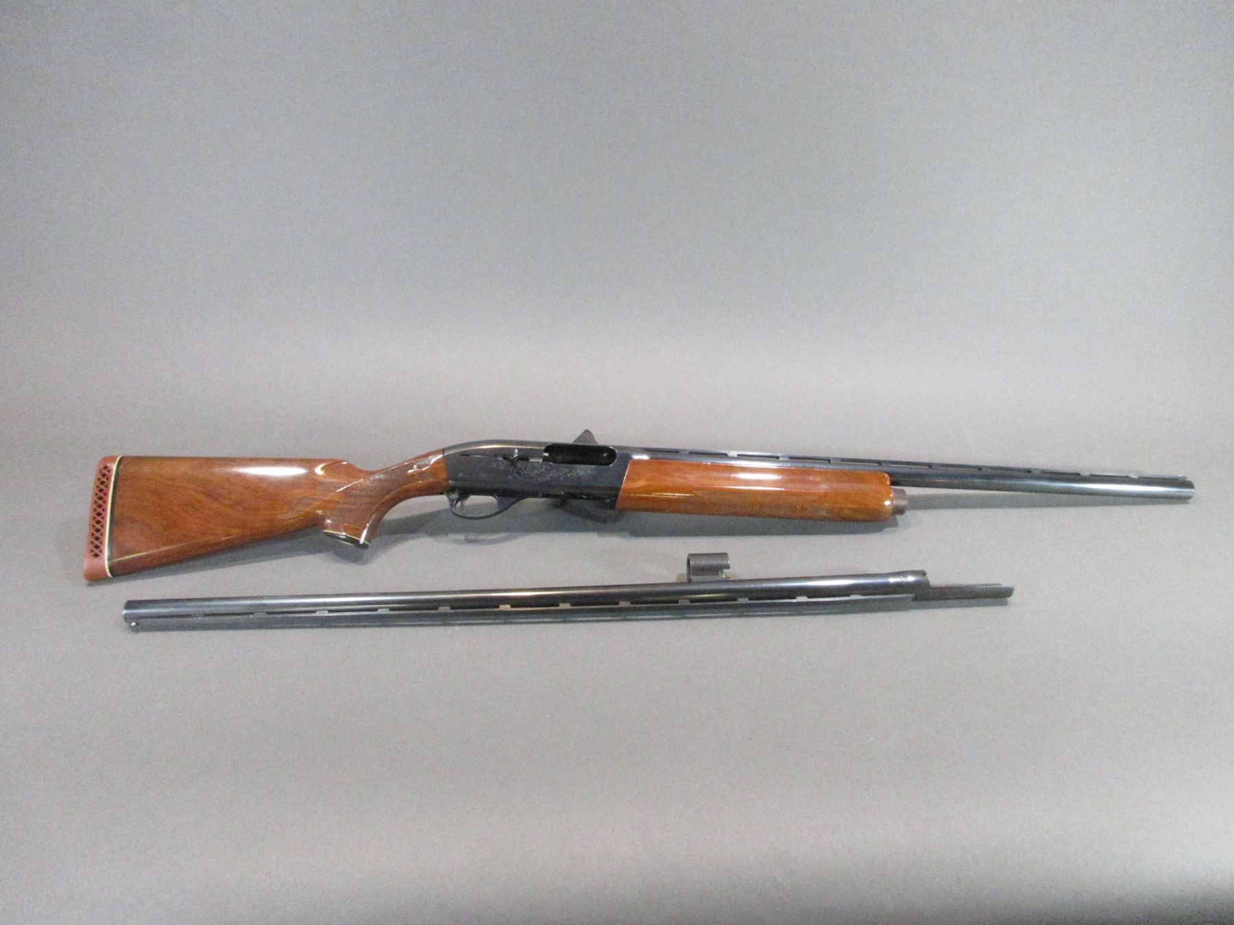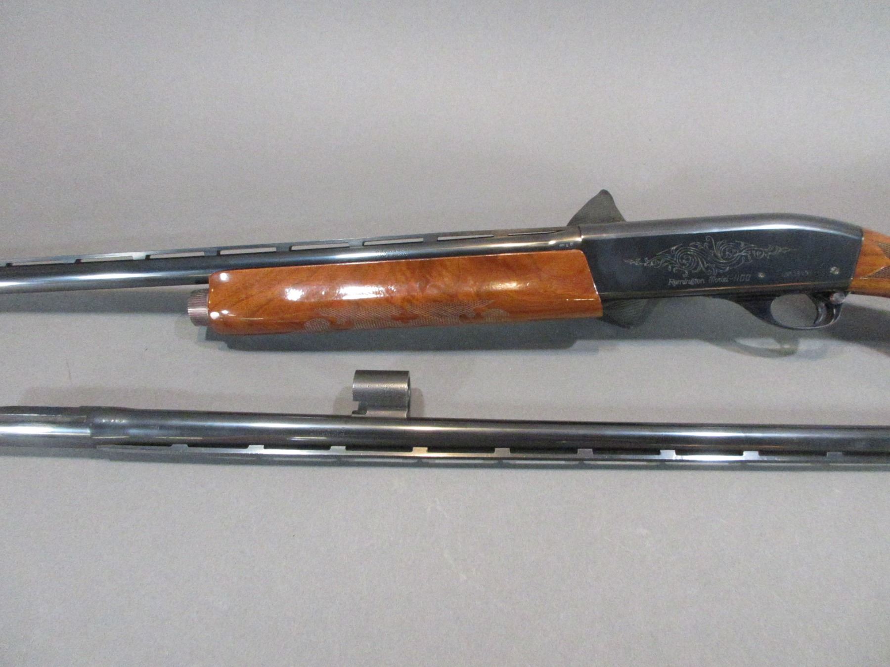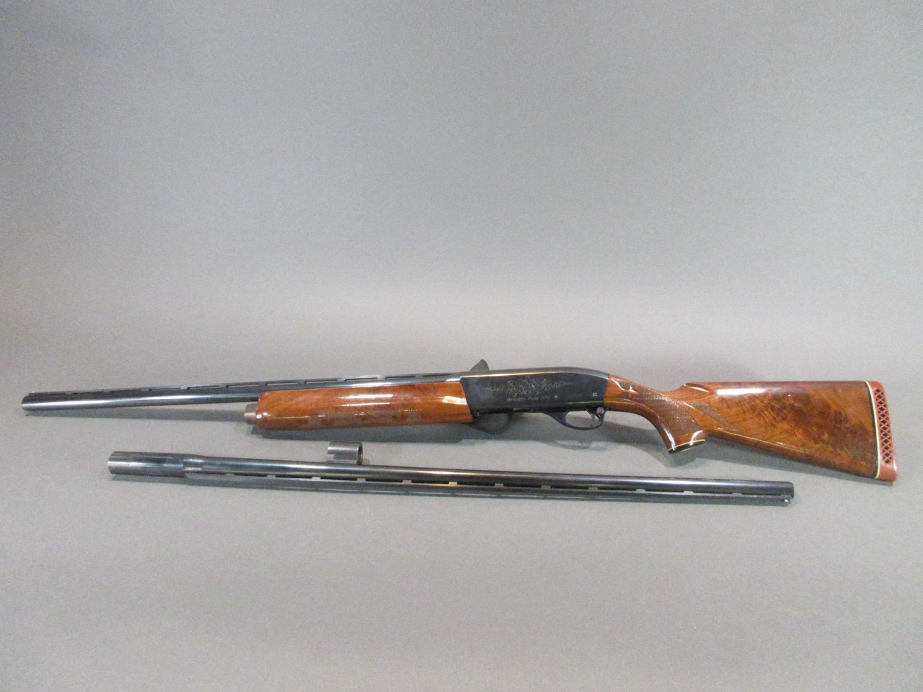 Remington Model 1100 Semi-Automatic Shotgun- 12ga- 25.5" Ventilated Ribbed Barrel- Extra 30" Ventilated Ribbed Barrel- Checkered- Engraved- Like New Condition- #L963819V