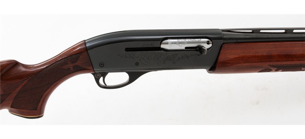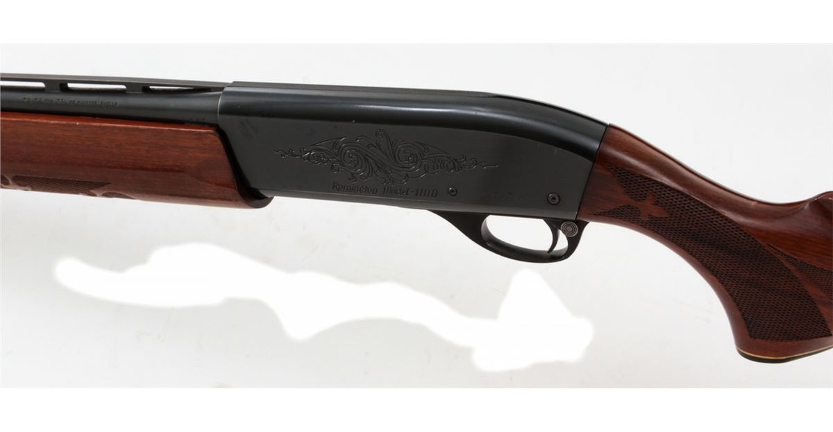 Remington Model 1100 Semi-Automatic Shotgun, #207527X, 20 ga., 25-1/2'' vent rib barrel for 2-3/4'' shells choked Imp. Cyl., blue finish, pressed checkered walnut stock. Condition is near fine retaining approx. 94% original blue with light scuffs and scratches. Stock with light general handing marks from field use. Crisp action, mirror bright bore. Est.: $300-$500. (Modern)