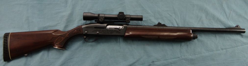 #PO94086M; 12 ga. 21" smooth bore bbl. w/rifle sights w/scope mounted. In good overall blued condition. Stock is good w/some scratches & marks from hunting use.