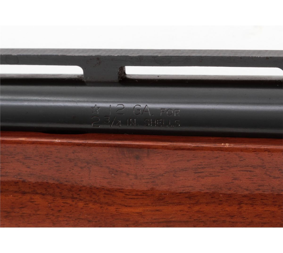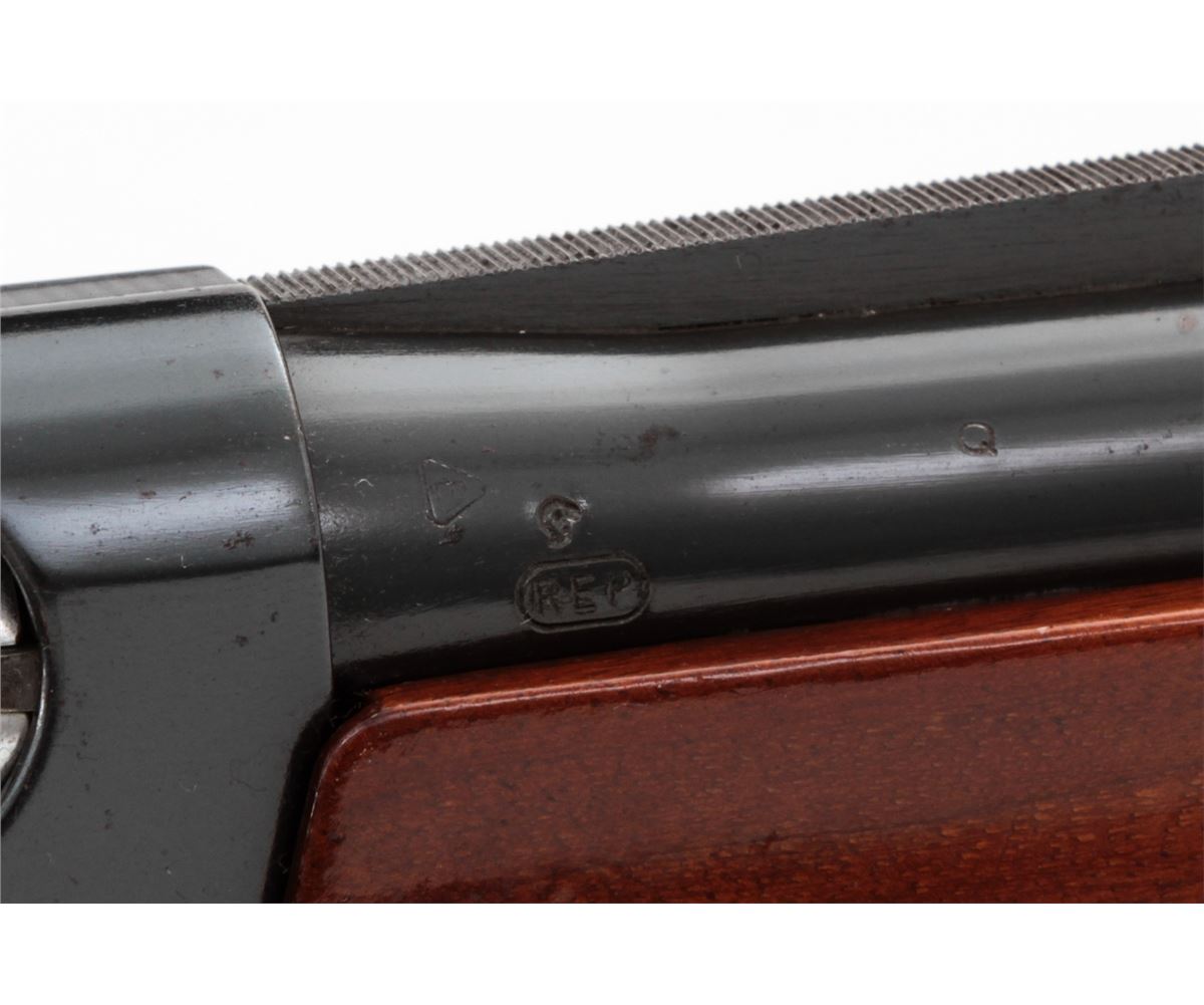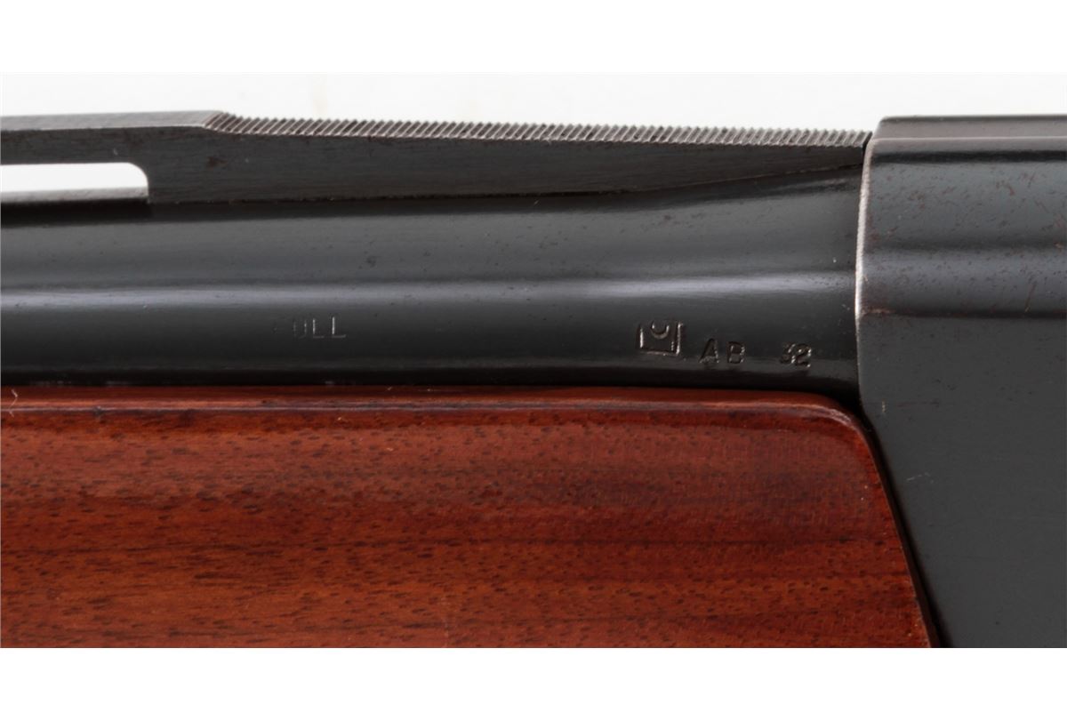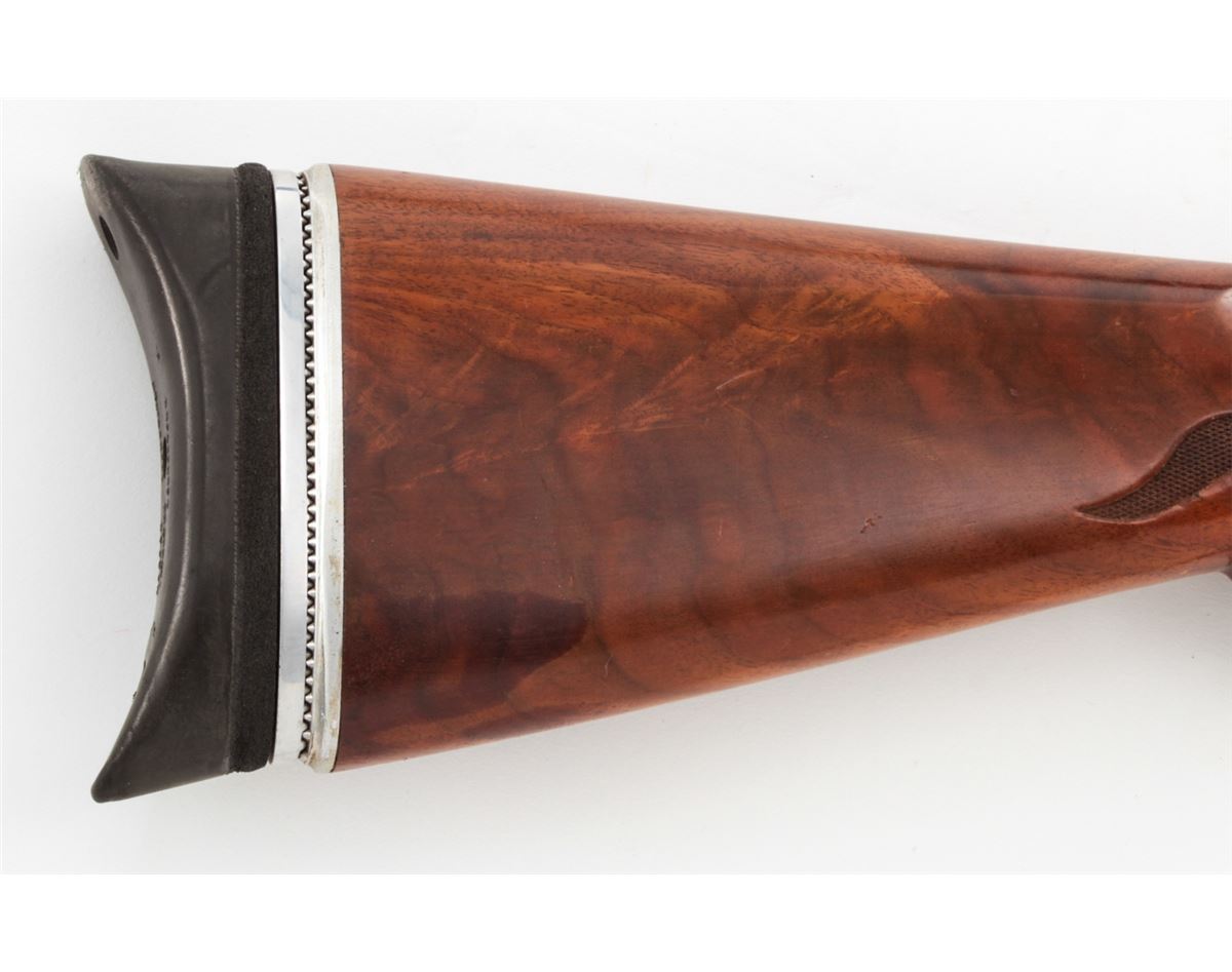 Remington Model 1100 Trap-T Semi-Automatic Shotgun, #N519946V, 12 ga., 30'' vent rib barrel choked Full for 2-3/4'' shells, blue finish, pressed checkered walnut stock, with adjustable butt pad. Condition is about fine showing light to moderate use, as light flaking to right side of receiver and small scattered pressure dings to stock and forend. Action remains crisp, bore is bright. Est.: $450-$600. (Modern)