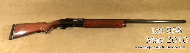 Remington Model 1100 Trap semi-auto shotgun, 12 gauge, 2-3/4” or shorter shells, 30” ventilated rib barrel, blue finish, checkered wood stocks, #546860V. This gun is in overall very good condition showing approx. 97% of an older re-bluefinish, very good bore, crisp action, very good wood with some scattered nicks and scratches from storage, Pachmayr hard rubber butt pad. Est.: $200-$300.