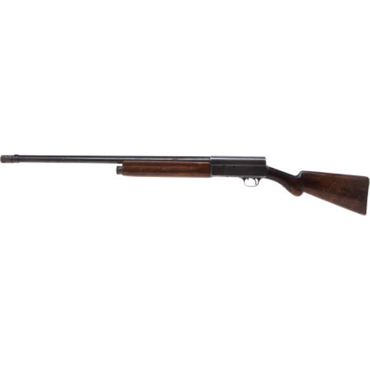 Remington Model 11A Semi-Automatic Shotgun. Serial no. 257, (first year of production) 12ga., 28-inch barrel with brass bead front sight on textured rib. Poly-choke. Blued finish. Barrel with Remington address. June 16, 1903 last Browning patent date on receiver. Straight grain forearm. Figured grain stock with horn buttplate marked: "REMINGTON AUTOMATIC."Condition: Fair to good. Retaining approximately 50% original blue with the balance fading to a gray-brown patina. Heavy wear throughout with scattered patches of frosting. Forend likely a replacement. Repairs to wrist. Numerous dents, scratches and chips to stock. Buttplate with chip at toe. NRA FIREARMS FOR FREEDOM PROGRAM
