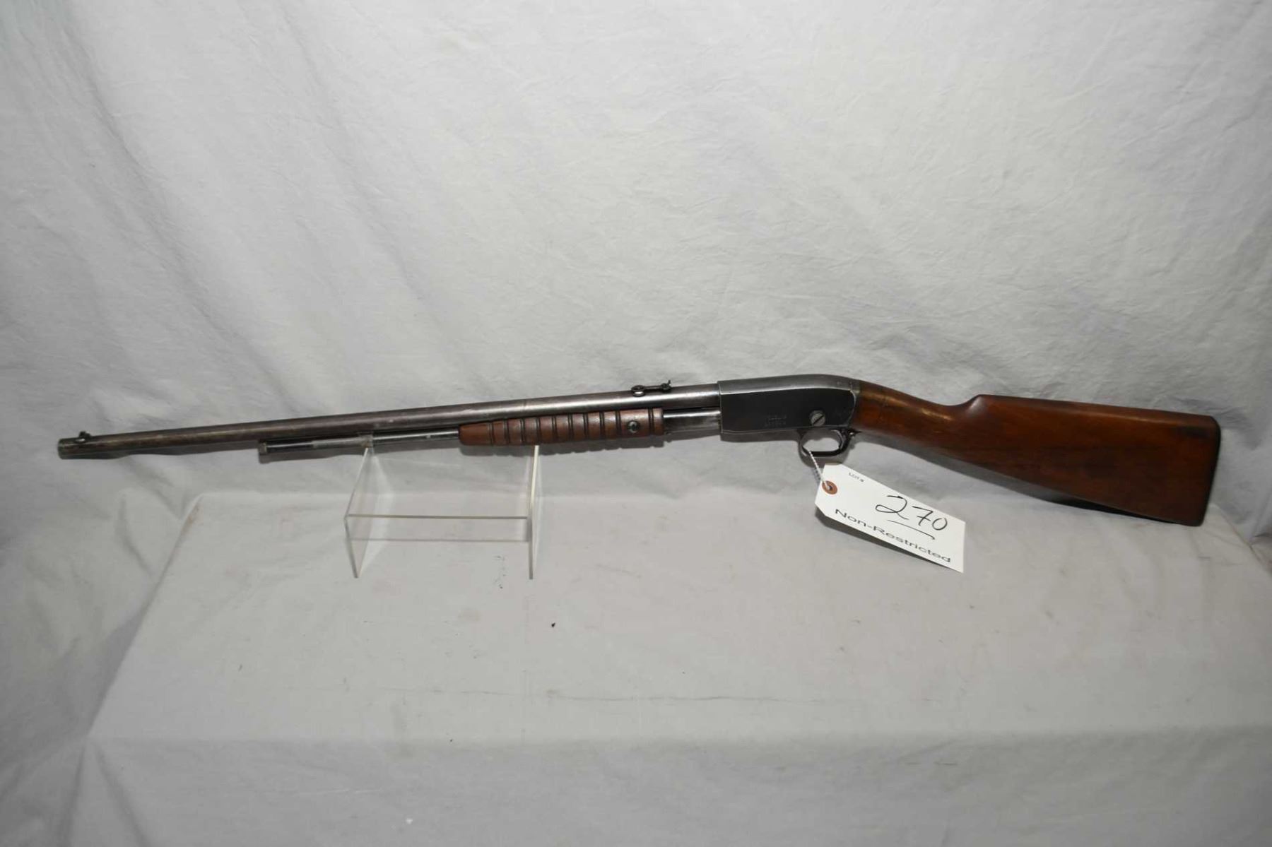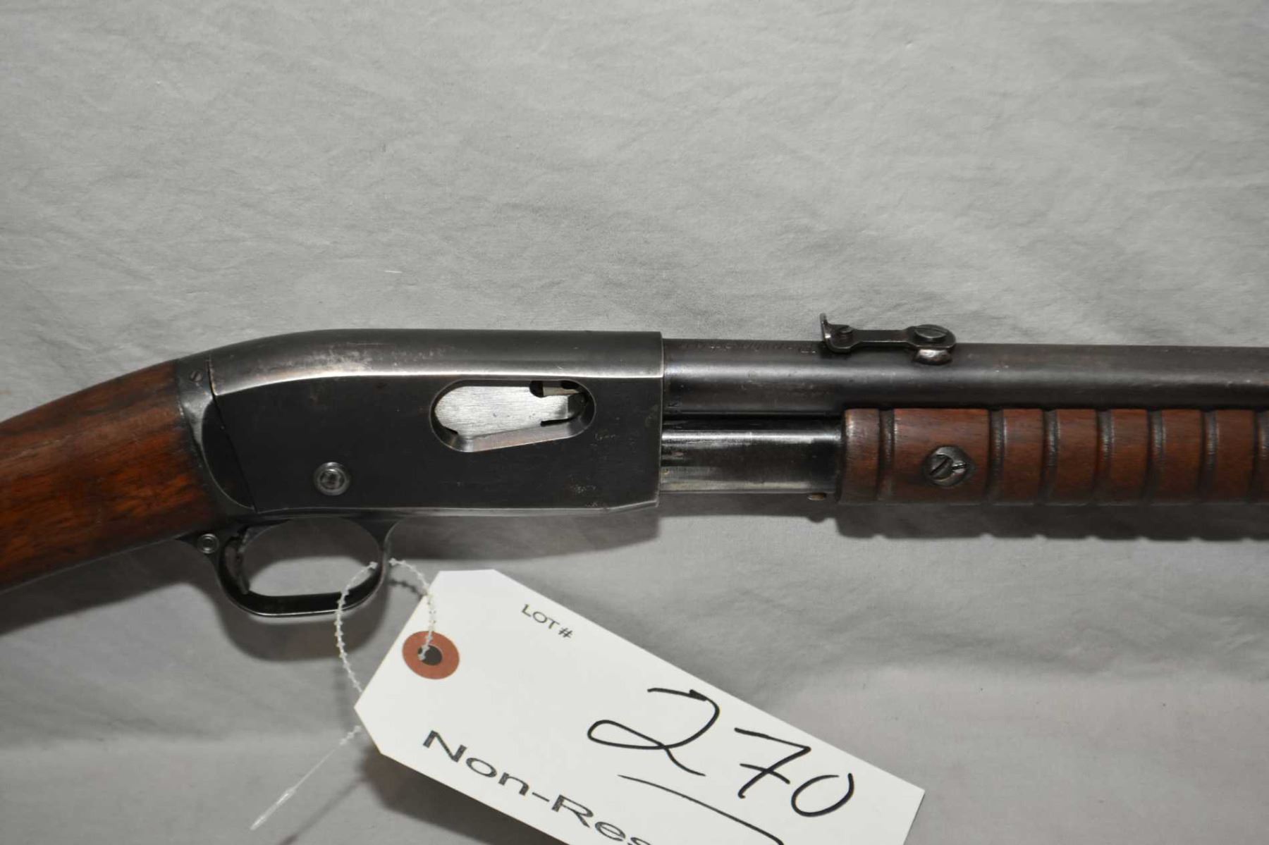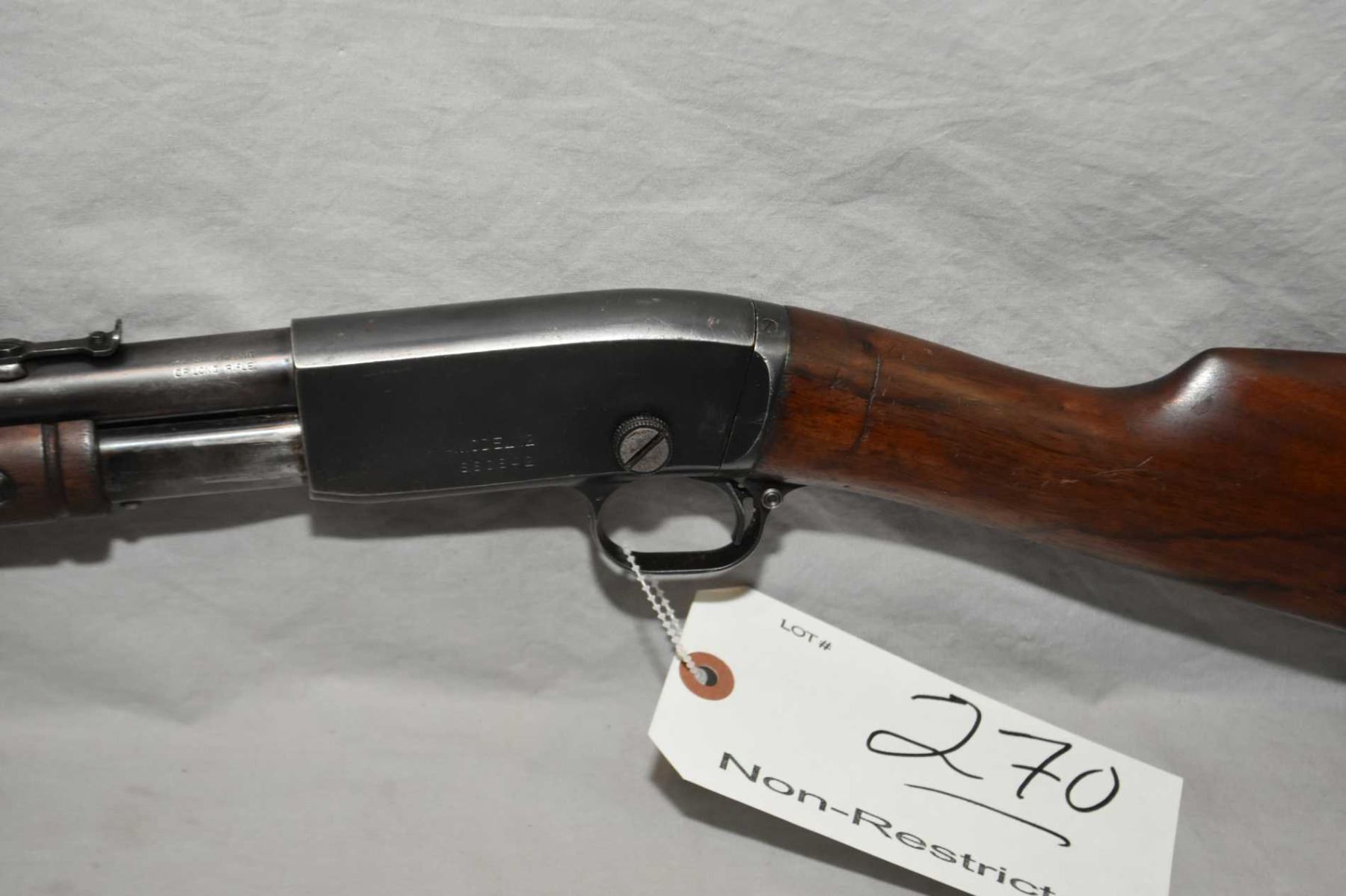 Remington Model 12 .22 LR Cal Tube Fed Pump Action Rifle w/ 22" round bbl [ blued finish starting to fade, few marks, barrel sights, good grooved forewood, some marks, butt stock with flaking varnish and marks, Remington UMC butt plate ] Ser # 660842
